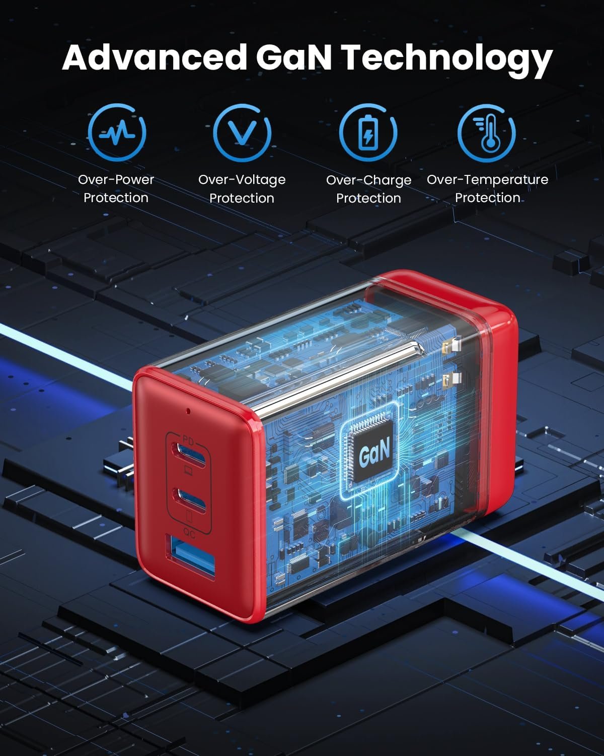 【Latest GAN III Chip Technology】 The USB C charger adopted GaN III generation chip technology, built-in multi-protection system and premium microchips. With higher energy efficiency and upgraded heat dissipation, Gallium Nitride (GaN) makes our chargers smaller and safer without sacrificing a drop of power. Built-in overcharge protection, overheating protection, short circuit protection, over-current protection, over-voltage protection. (Note: Cable is not included)