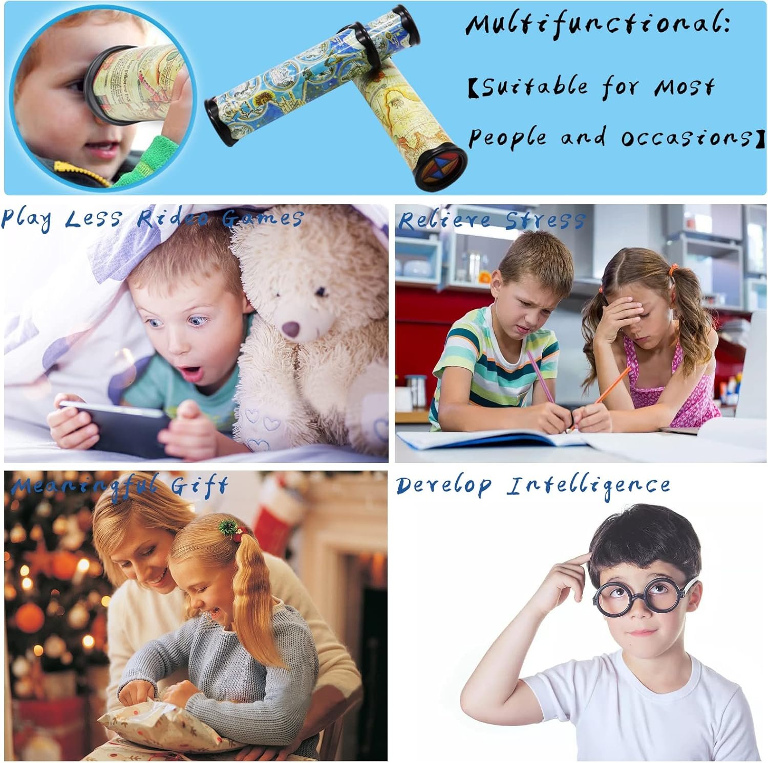 You can give the classic kaleidoscope toy as a Christmas gift,birthday gift,party favor,school prize,class prize,candy bag filler and more for kids.In addition,this kaleidoscope is also suitable for people of other ages.