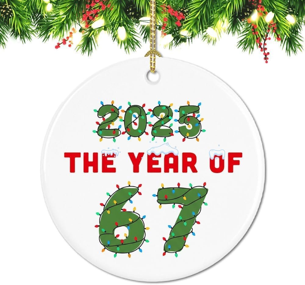2025 The Year 6 7 Christmas Ornament Funny Gen Alpha Slang Meme Decor Cool Gen Z Tree Decoration Viral Trendy Six Seven Gift Idea for Teens Adults Youth Holiday Ornament Funny Saying Décor