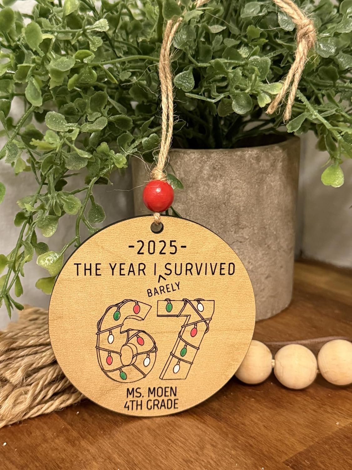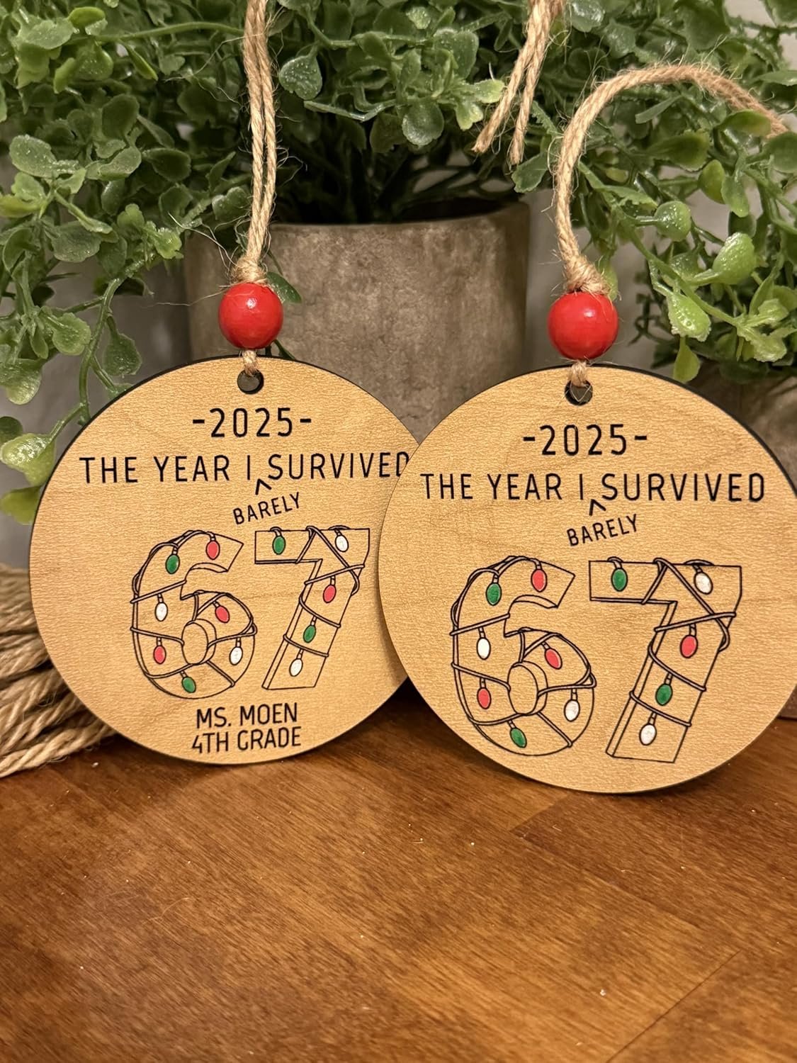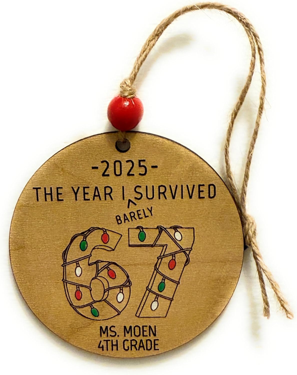 2025 Viral Tiktok 67 – The Year I Barely Survived Ornament Six Seven Ornament Gift for Teacher from Student, Co-Worker, Elementary Teacher or Parent who has Heard six Seven Enough This Year