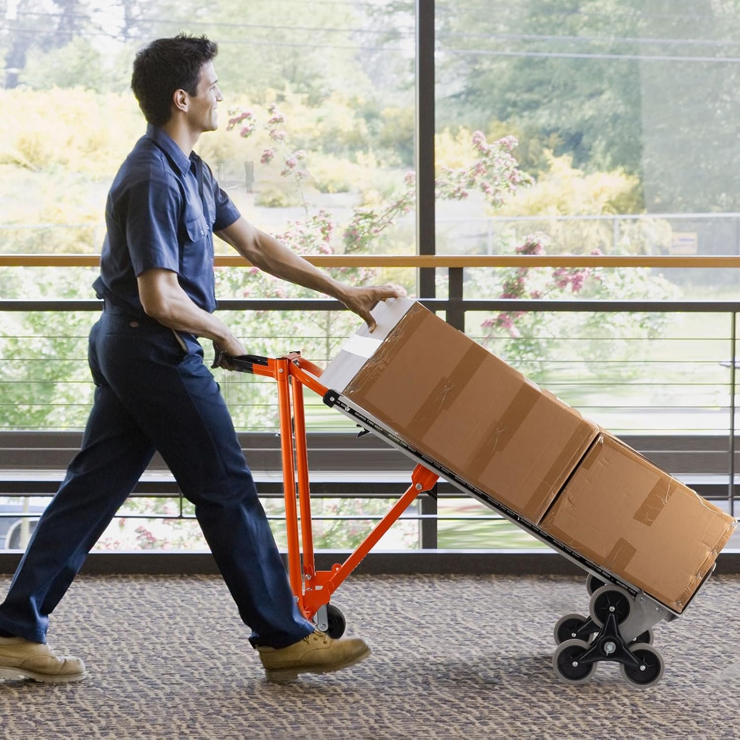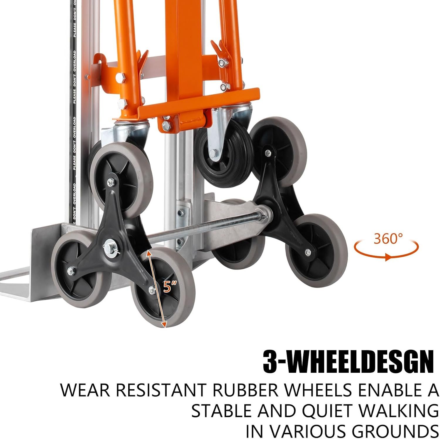 Six-Wheel Stair Climber – This stair climbing hand truck features a 6-wheel design that enhances energy efficiency when ascending stairs. It is highly convenient for moving items over curbs, stairs, and other obstacles. Additionally, this design helps to lessen the pressure on the supporting surface, making it more effective.