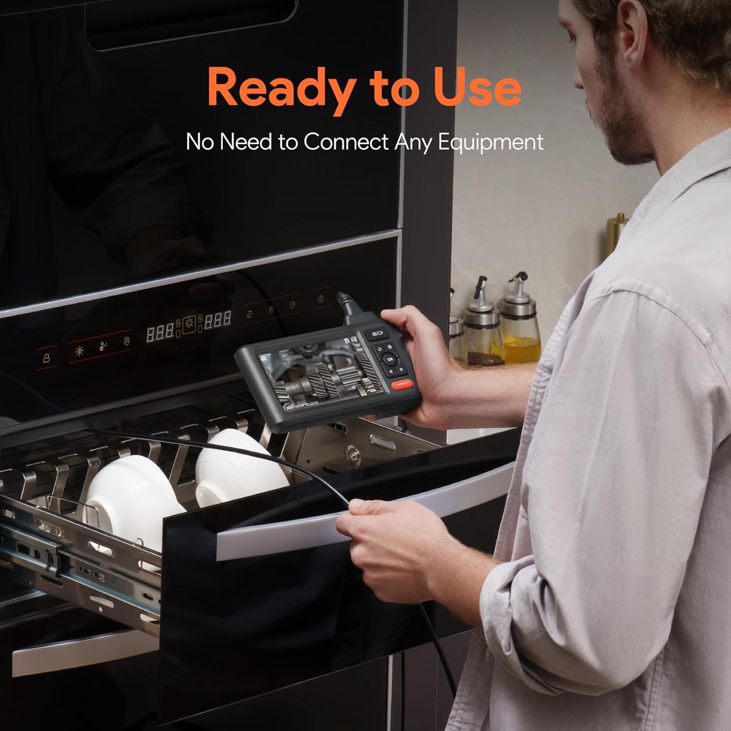 Large Vivid Display: The borescope camera with light features a 5″ IPS screen that provides vibrant visuals and remarkable clarity, with every detail presented accurately, ensuring that nothing is missed during the inspection, aiding in a more comprehensive assessment. The endoscope camera’s ergonomic design brings a comfortable operating experience. Excellent visibility, making it a great helper for plumbers, electricians and technicians
