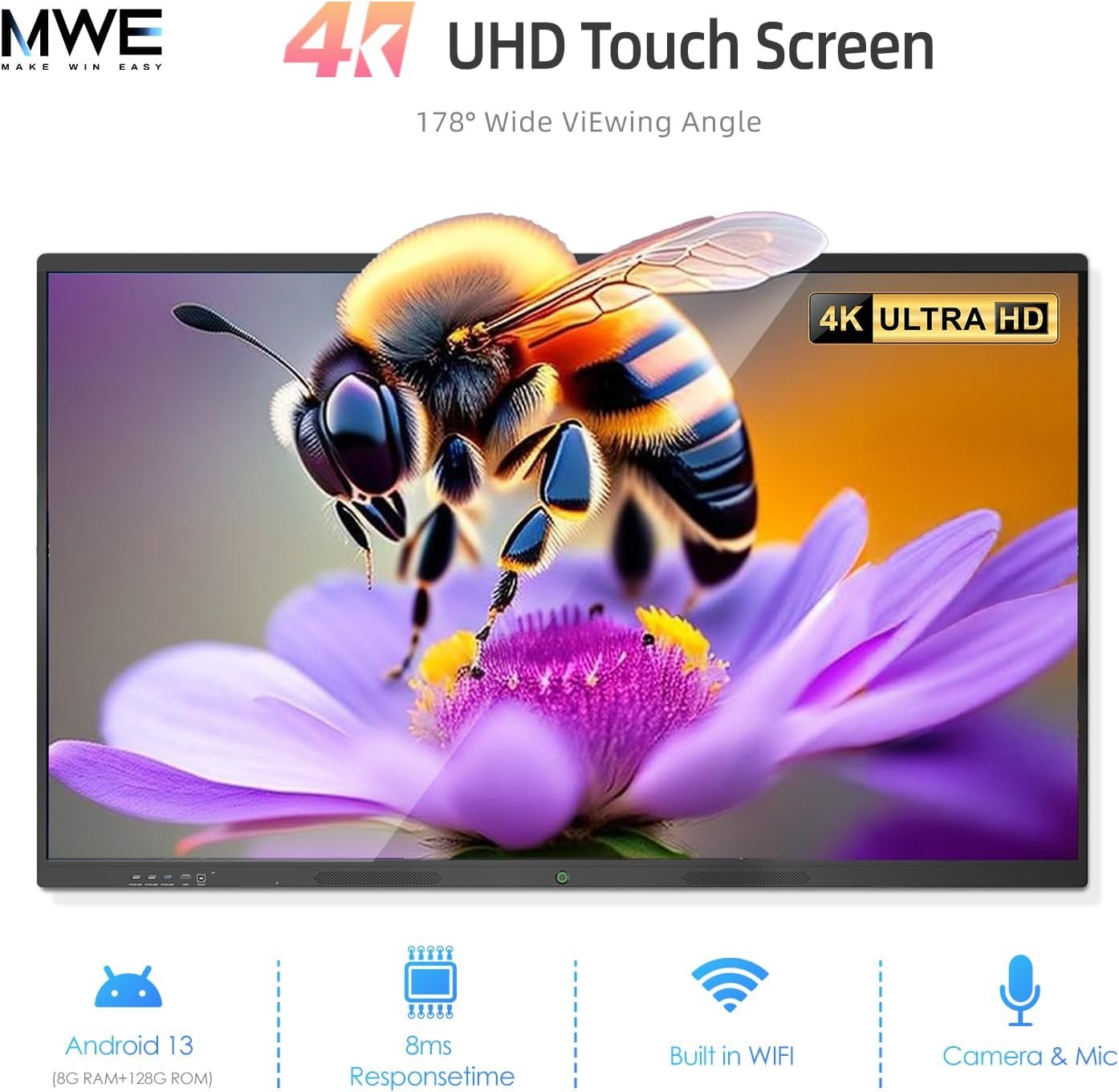 【All-in-One Smart Board】Transform any space into a dynamic learning or collaboration hub with the MWE-QIXZOCV All-in-One Digital Board. This premium Interactive Whiteboard integrates a powerful computer (8GB RAM/128GB ROM), stunning 4K display, professional conferencing tools, and interactive software – eliminating the need for separate projectors, PCs, and conference systems. As a true Smart Board for education and business, it streamlines setup, reduces clutter, and delivers a seamless, integrated experience right out of the box. Experience the ultimate Digital Whiteboard solution designed for modern, efficient engagement.