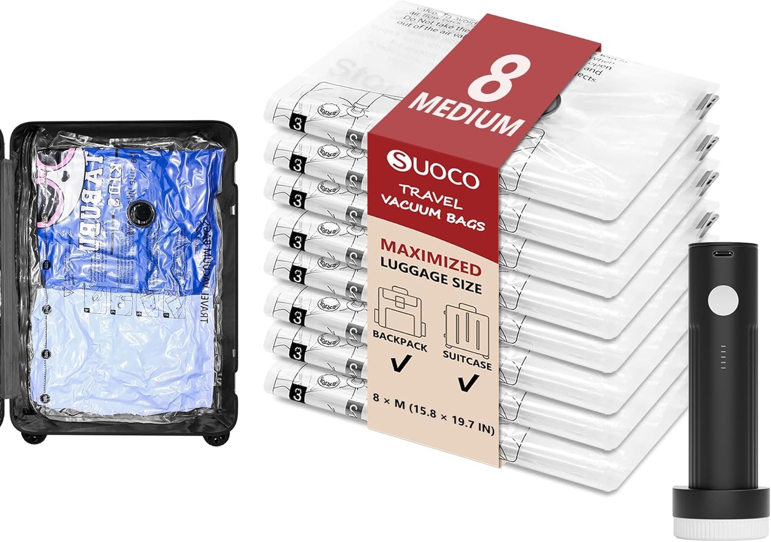 Travel Size: 8 Medium Size (15.8in×19.7in) fit for 20“ carry-on luggage.