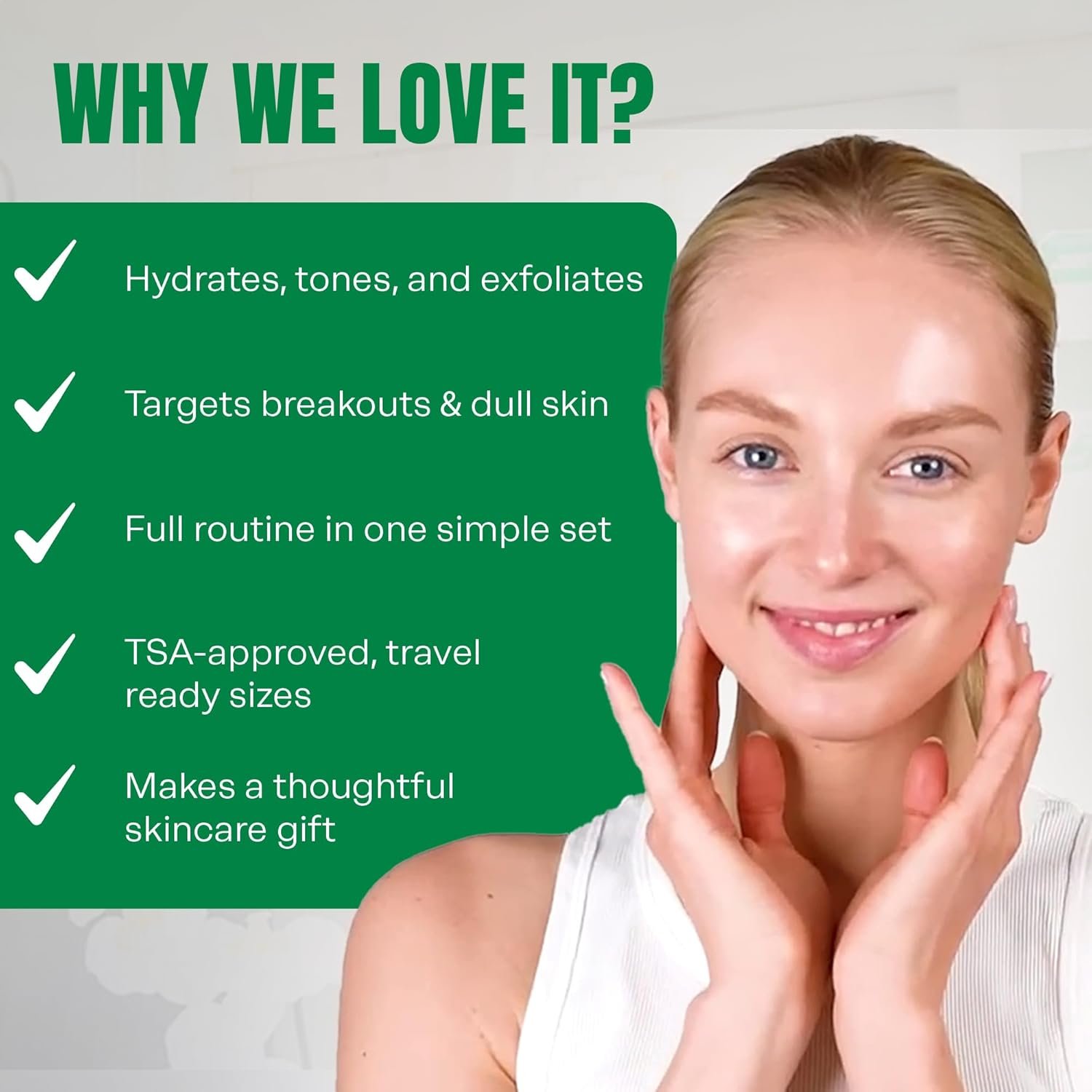 Customers find the skincare kit excellent and appreciate its perfect travel sizes. They like the variety of products included.