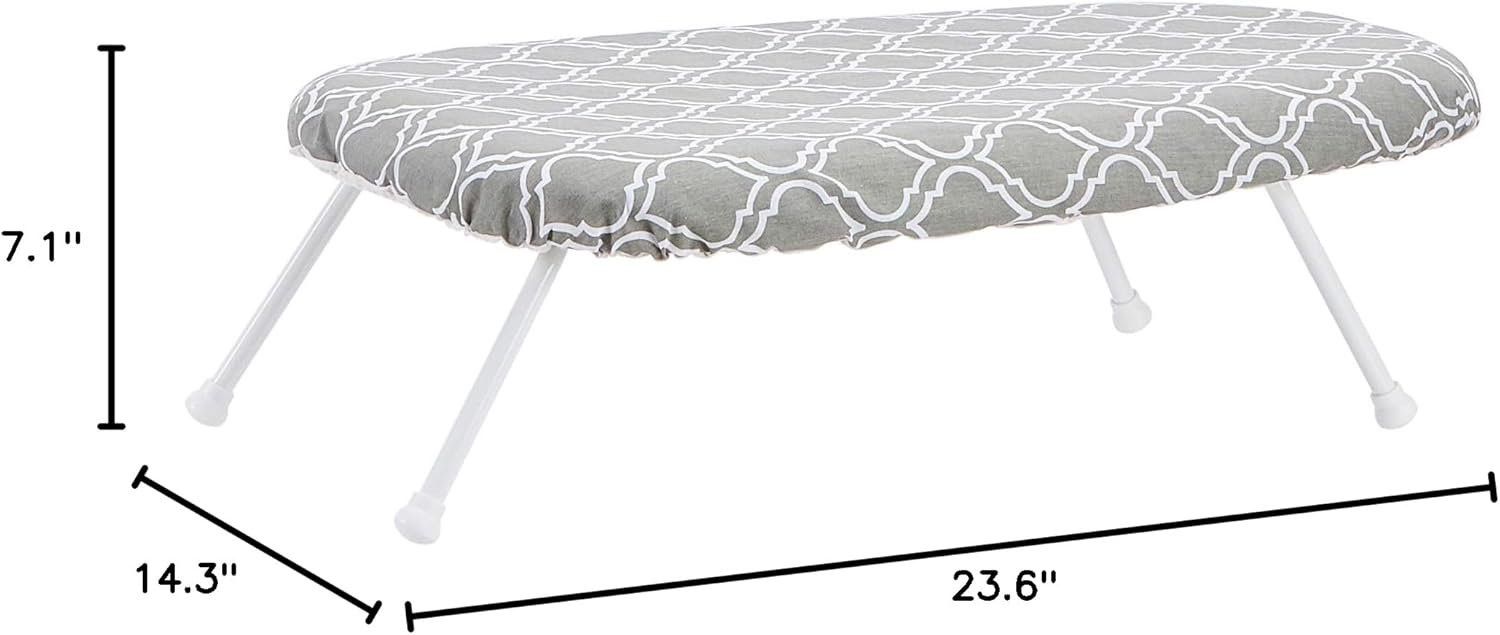 Amazon Basics Compact Tabletop Ironing Board with Folding Legs – Trellis Removable Cover, Chevron, 23.6″L x 7.1″W x 14.3″H