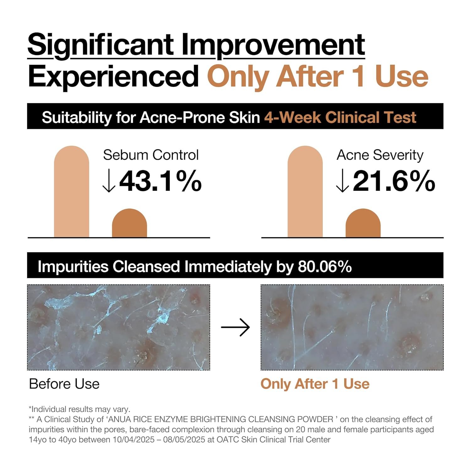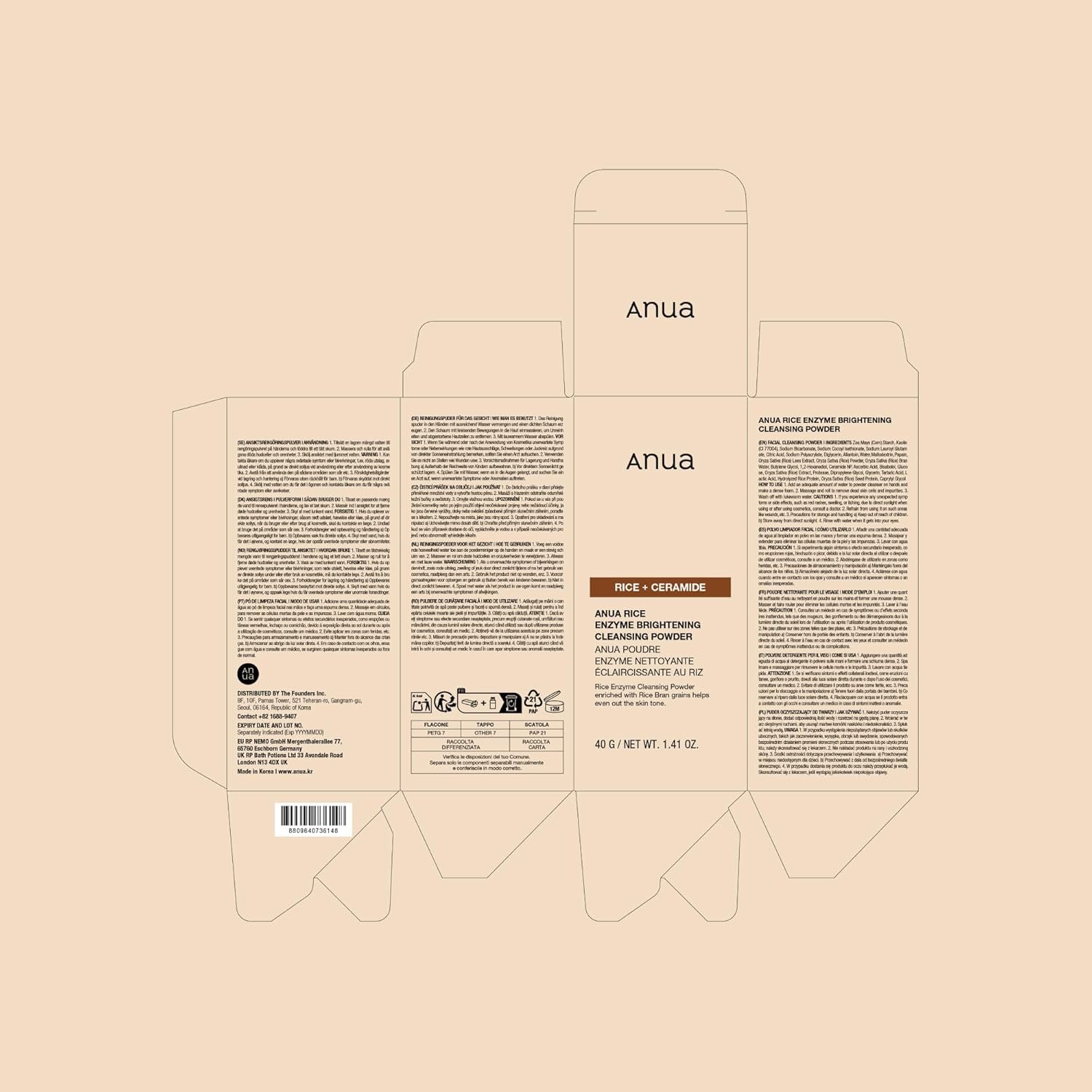 ANUA RICE ENZYME BRIGHTENING CLEANSING POWDER, Rice Mask, Ceramide, Gentle Face Wash for Brightening, Radiant Skin, Facial Cleanser for Dry Skin, Korean Skincare, Fragrance Free, 40g/1.41fl.oz.