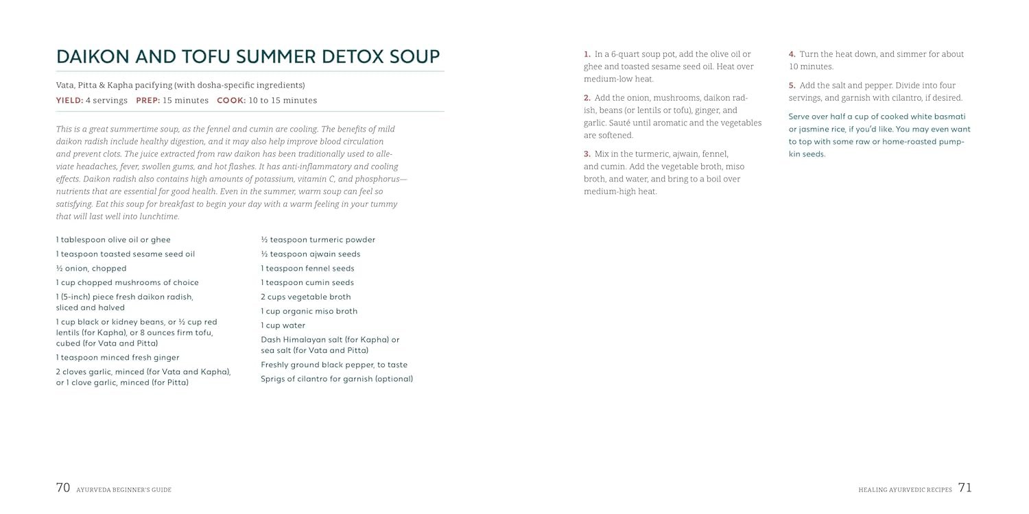 Customers find this Ayurveda guide informative and easy to follow, providing a great introduction to the principles of Ayurveda. The book is well-written, beautiful, and customers enjoy reading it, with one customer noting it covers everything needed to get started. They appreciate the recipes included and find the content easy to understand.