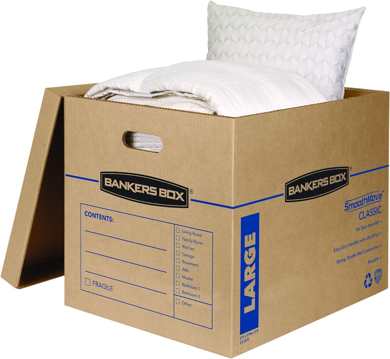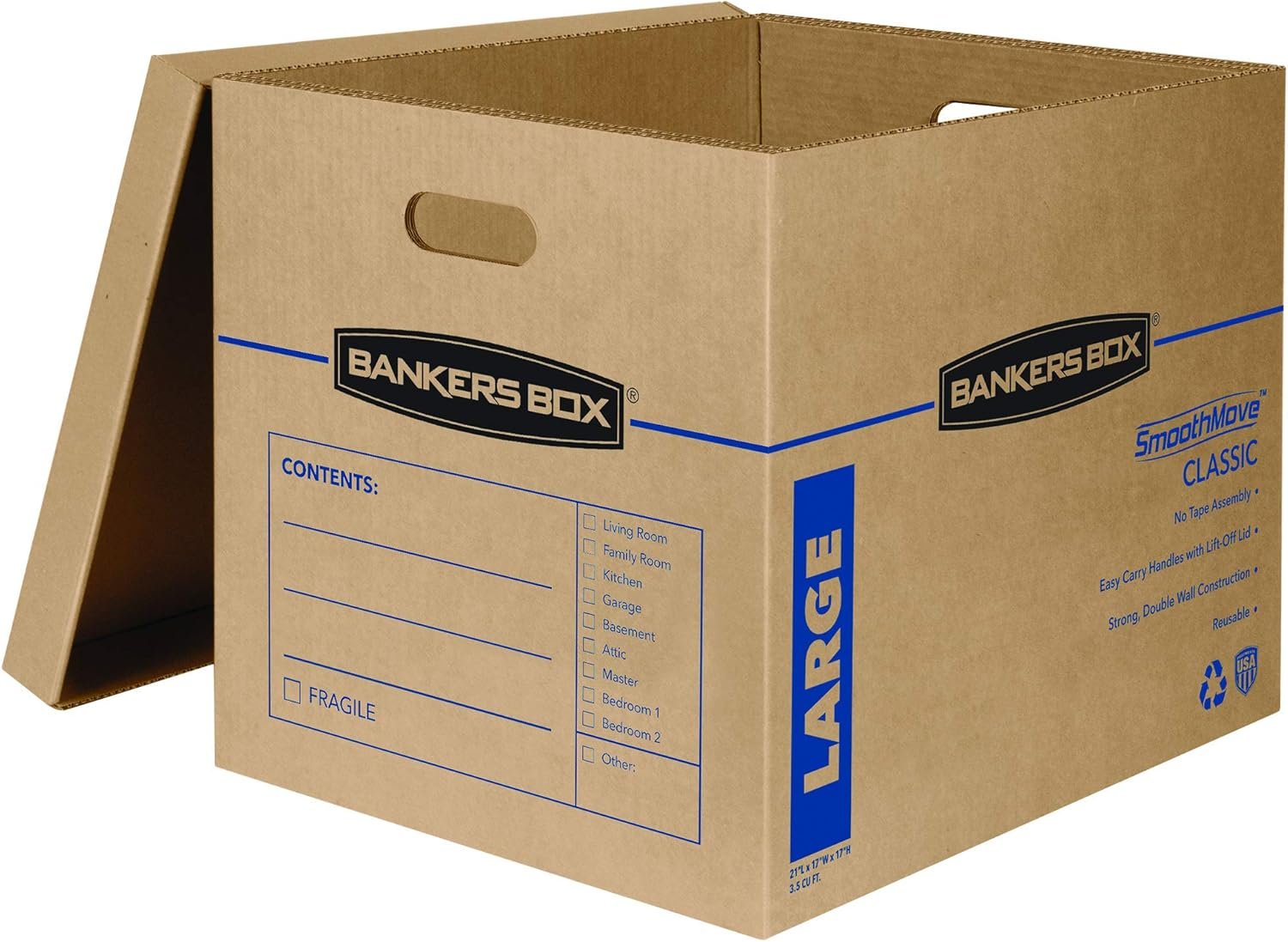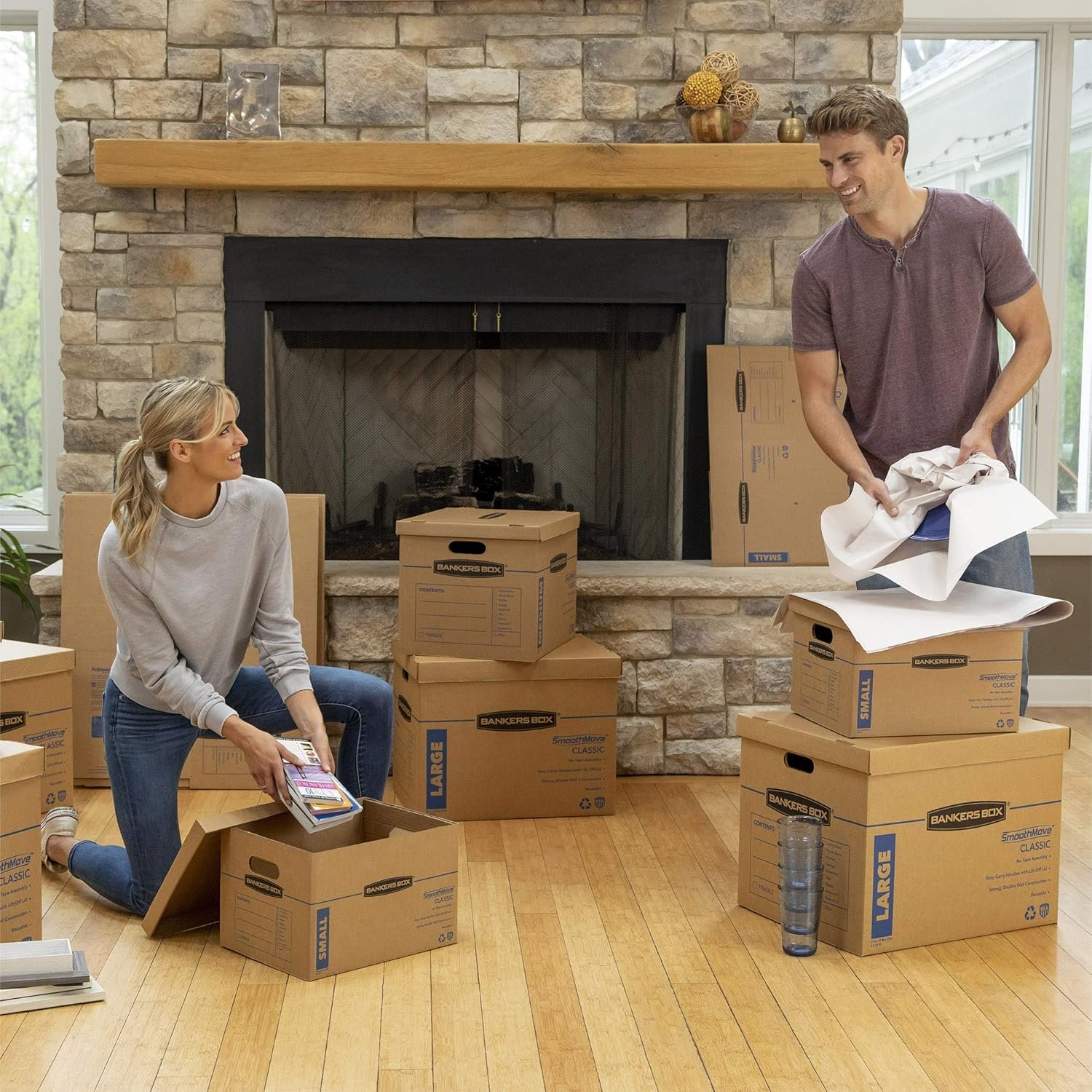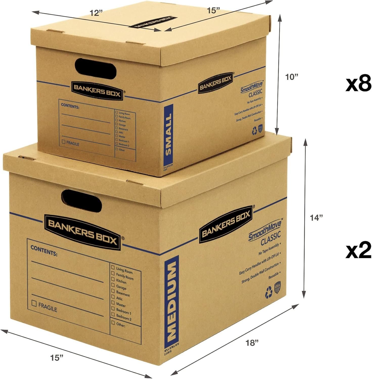 Bankers Box Classic Moving Box 10 Pack Kit, Reinforced Handles, Tape-Free Assembly, Box with Lid, 8 Small and 2 Medium Boxes (8816901)