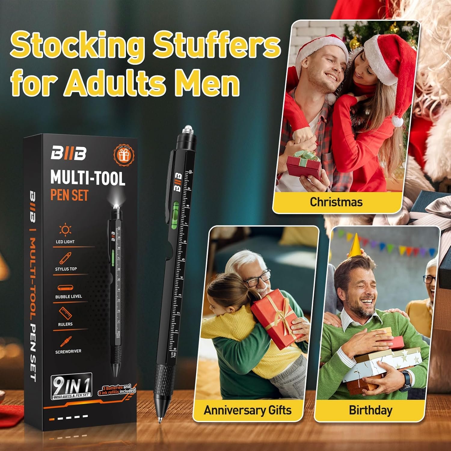 Gifts for Dad Who Wants Nothing: BIIB multi-tool pen with personalized gifts box are unique gifts for dads, men, husbands, and grandpas on Christmas, Birthday, Thanksgiving Day, Anniversary. Anyone who receives a BIIB multifunctional pen as a gift will love it