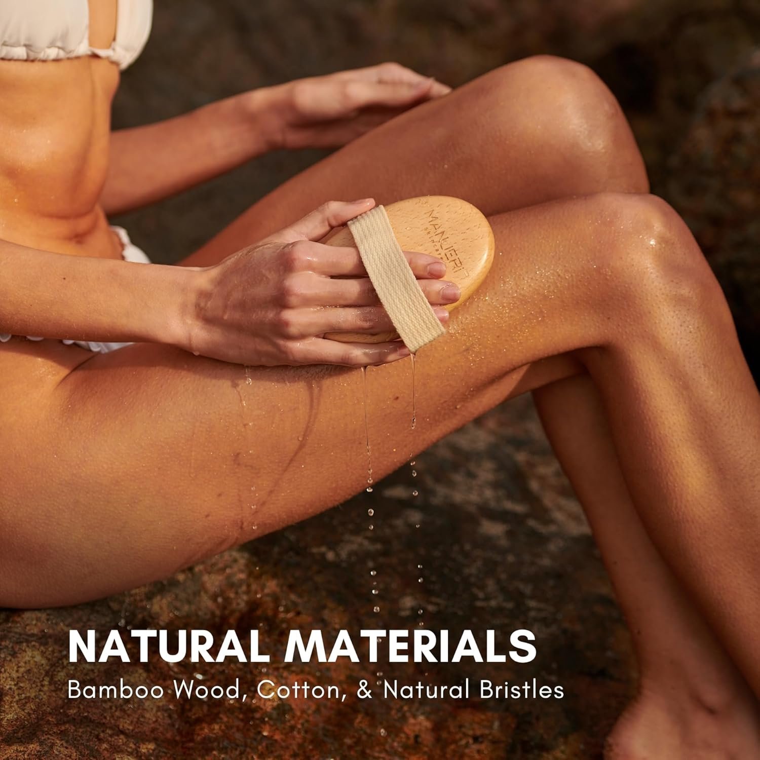 Body Brush, Natural Bristle Exfoliator for Smooth, Radiant Skin, Lymphatic Drainage, and Skin Toning Brush for Shower or Dry Brushing