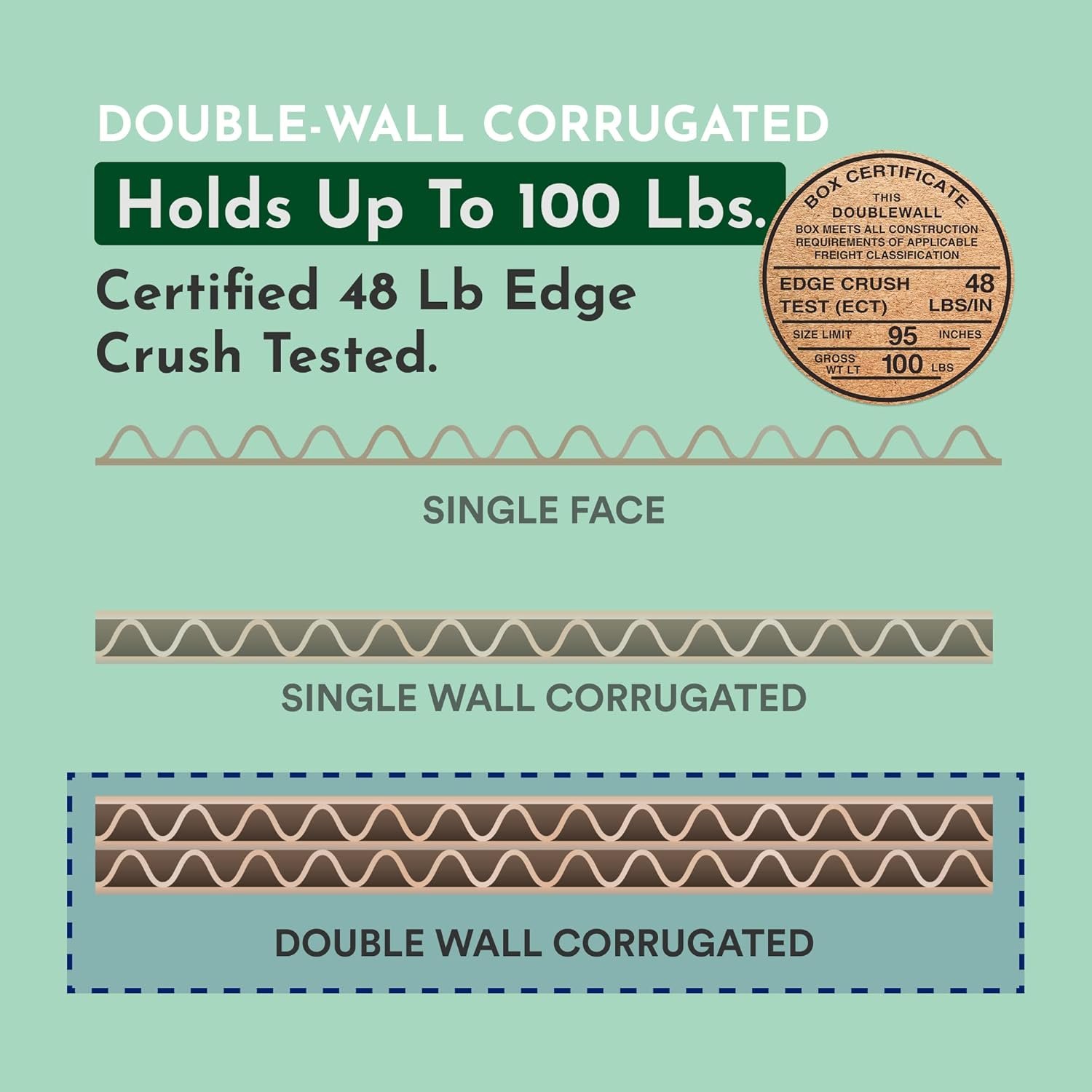 Heavy Duty Shipping Boxes: Holds up to 65 lbs (pounds), 32 lb (pound) edge crush tested, certified and tested to meet all single wall box storage, mailing, and freight requirements