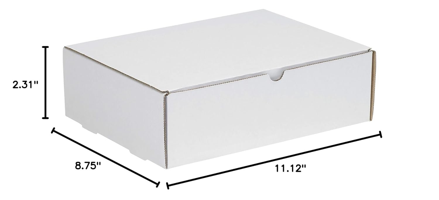 Boxes Fast BFM1182D Corrugated Cardboard Literature Mailers, 11 1/8 x 8 3/4 x 2 5/16 Inches, Tuck Top One-Piece, Die-Cut Shipping Boxes, Large White Mailing Boxes (Pack of 50)
