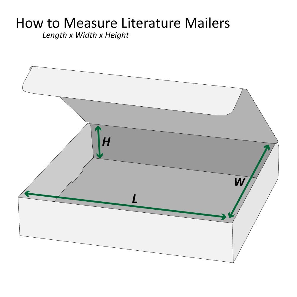 9 x 6 1/2 x 2 3/4″ White Literature Mailers. The perfect fit for your literature piece without the expense of a custom carton. Assembles in seconds without tape, glue or staples. Strong 200#/ECT-32-B white corrugated construction. Proudly made in the USA!