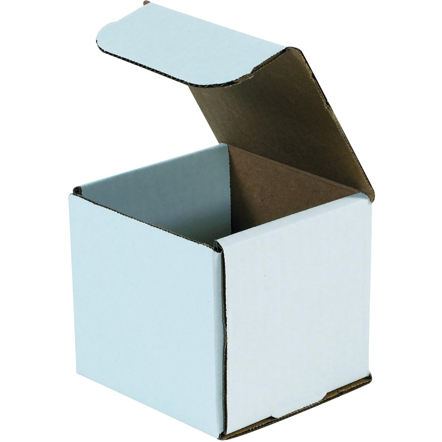 4 x 4 x 4″ White Corrugated Mailers. Corrugated Mailers are super strong yet light-weight to save on postage. Perfect for shipping small, light-weight fragile items. Corrugated Mailers are manufactured from 200#/ECT-32-B white corrugated. Crush resistant mailers fold to provide double walls of protection on front and sides. No tape, glue or staples needed. Proudly made in the USA!