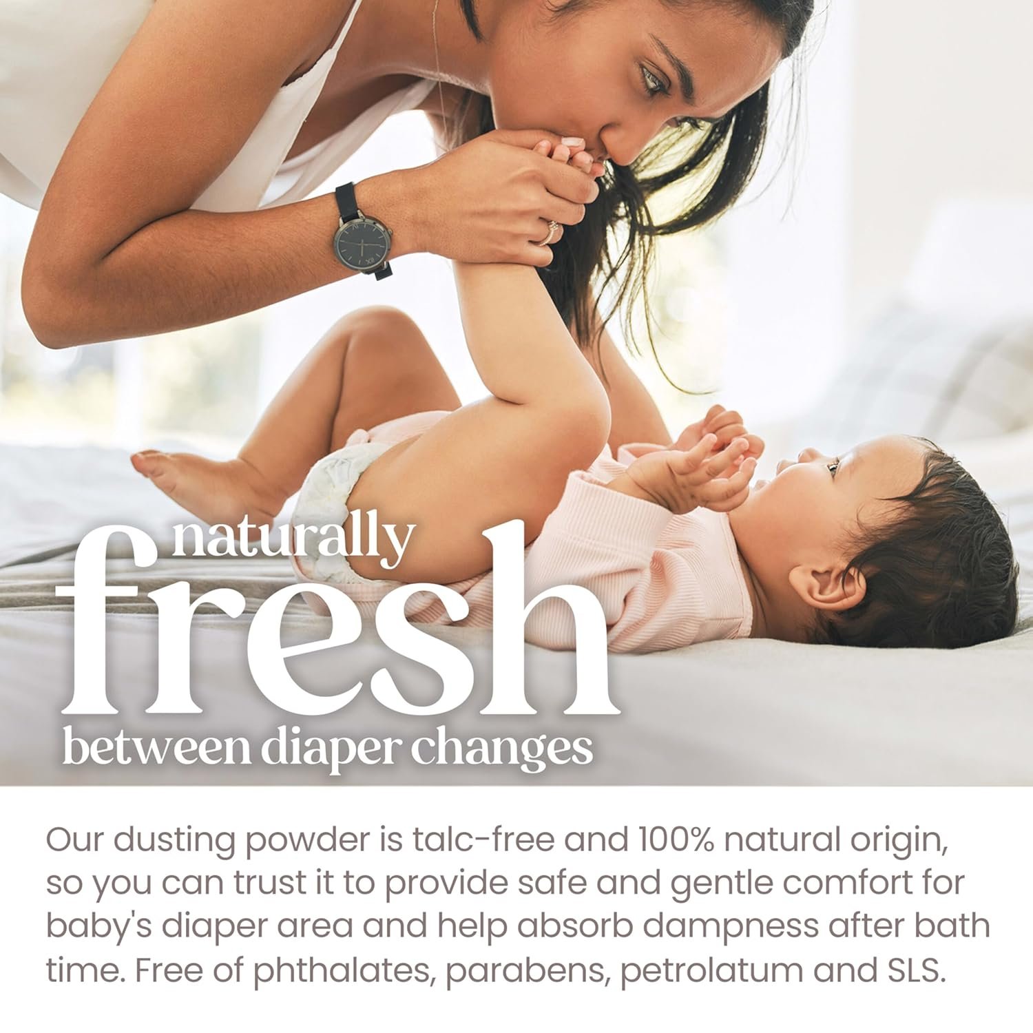 100% NATURAL ORIGIN: This 100% natural origin dusting powder is talc-free with naturally absorbent cornstarch and is formulated without parabens, phthalates, petrolatum or SLS