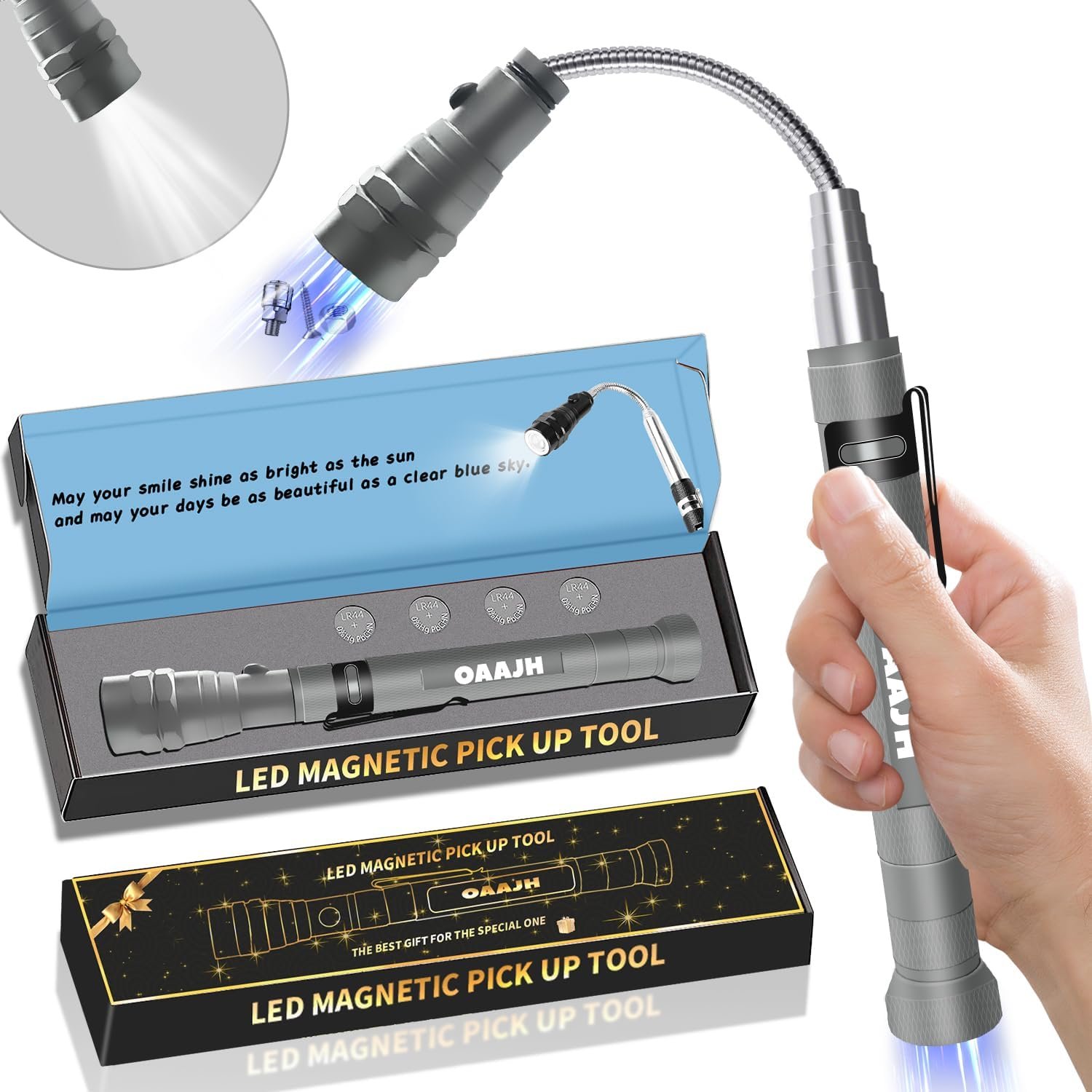 đăCool Gadgets Gifts for Men, Women, or Handymană: This telescoping magnet flashlight is a versatile and practical gift suitable for men, women, or anyone passionate about DIY and handy work. It features a pocket clip and non-slip surface for portability and a secure grip. With 3 super bright LED bulbs and 360-degree illumination, it provides light in hard-to-reach areas. The telescoping design extends from 6.88 inches to 22.44 inches, allowing easy access to objects in tight spaces. This gadget is a must-have tool for enhancing toolboxes and improving overall efficiency. Cool gadgets mens gifts.