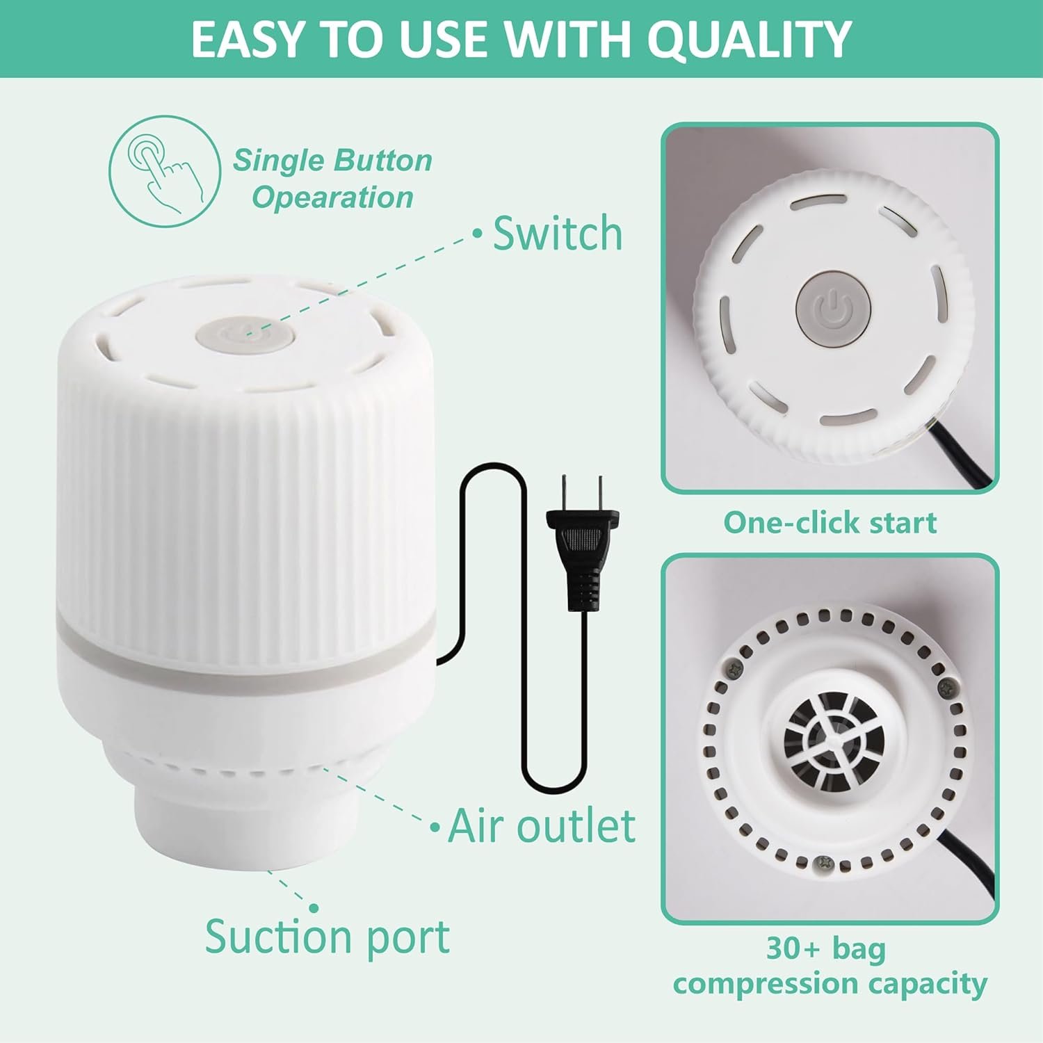 Powerful electric pump for fast & easy compression: Our vacuum seal bags feature an electric pump, achieving rapid vacuum and reducing the need for manual effort compared to traditional hand pump. Lightweight and compact, you can carry it for easy use anywhere.