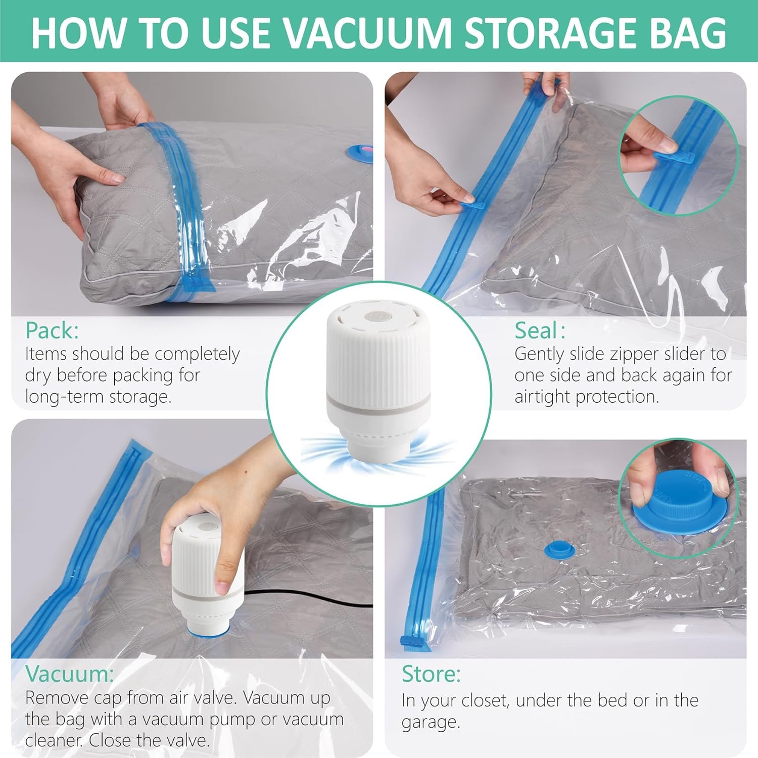 Reliable protection: With the triple-seal turbo valve & double-zip seal design, our vacuum bags effectively get the air out in the suction process. The robust PA+PE bag material protects your items from dirt, dust, and damage for long-term storage. Can be used repeatedly.