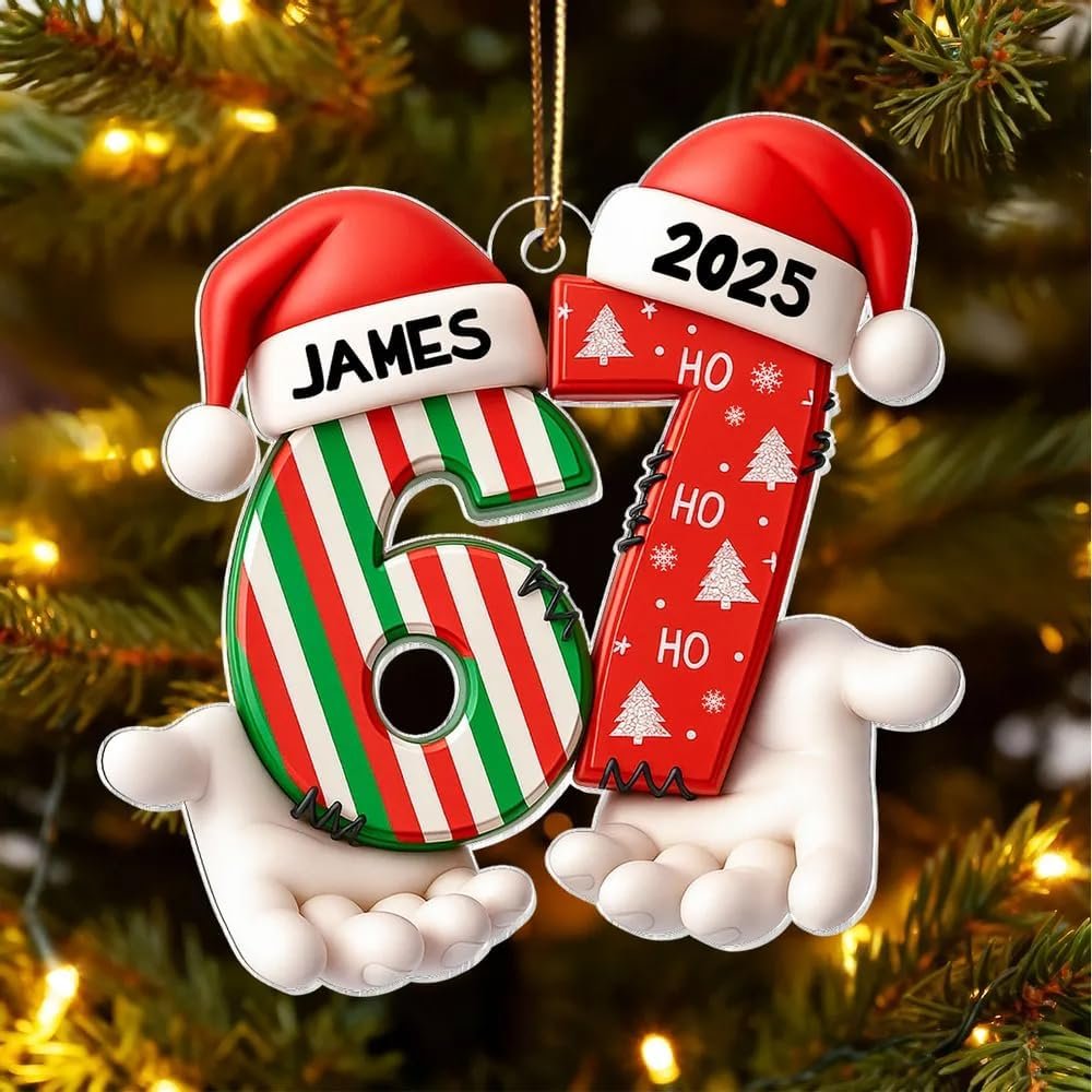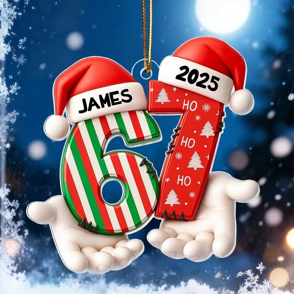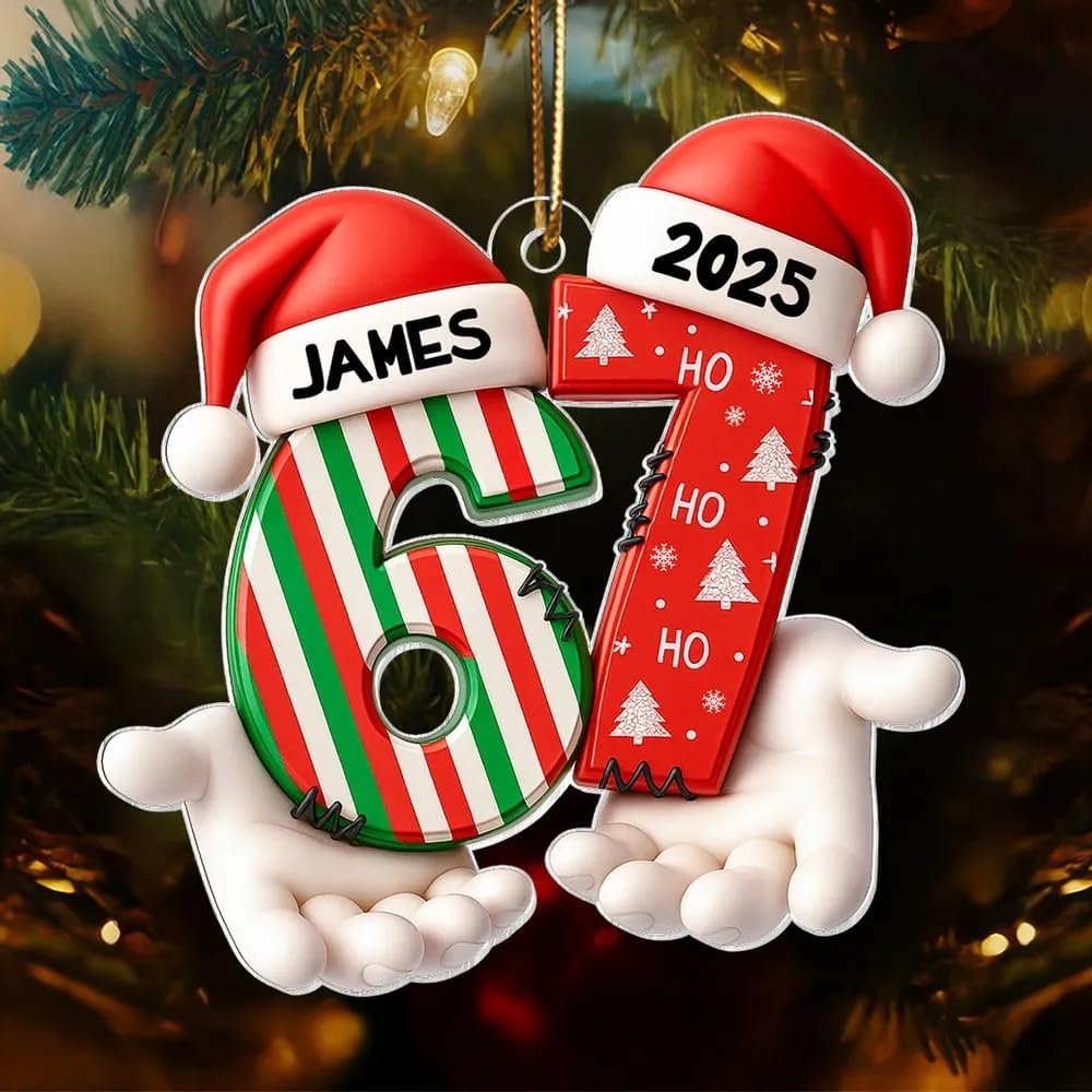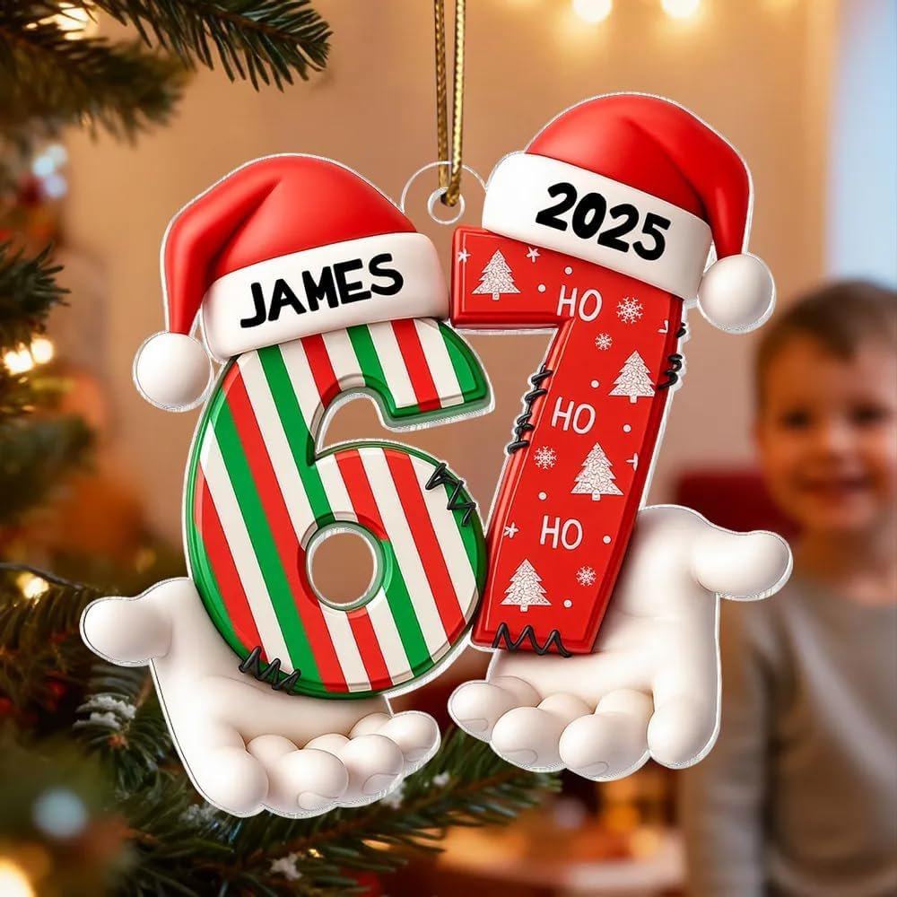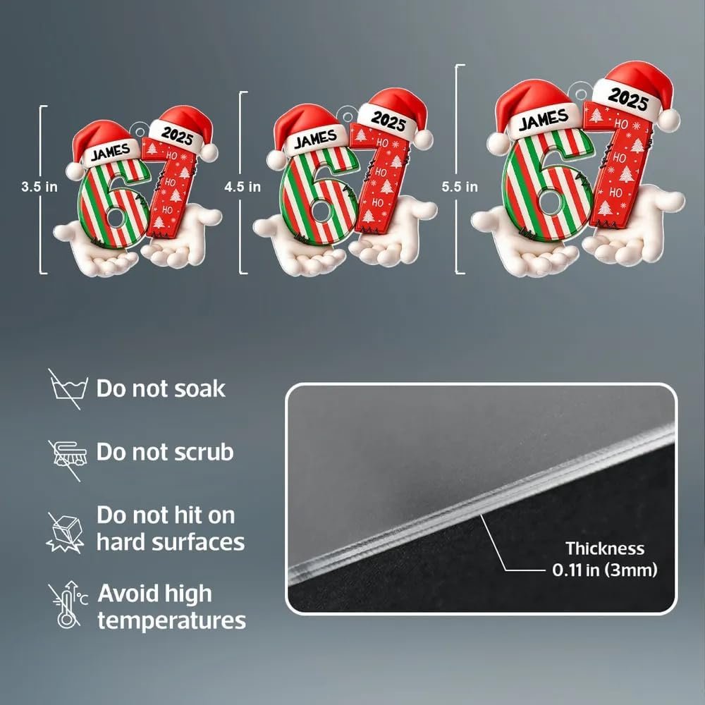 Custom 2025 Viral Trend Six Seven Ornament, Personalized Santa Hands 67 Christmas Decoration, Funny Teen Slang Acrylic Gift, Candy Cane Stripe Ho Ho Ornament, Gen Z Alpha Kid Grandkid Holiday Keepsake