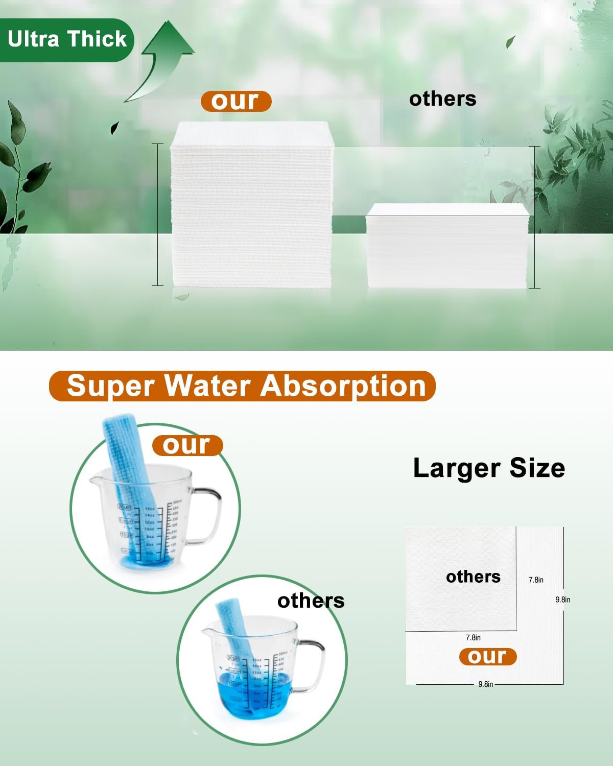 Increase And Thicken: The super strong thickness combined with the appropriate size brings super water absorption to this Face Towelette. Normal dry use will give you an ultra strong water absorption experience, while wet use will give you all the soft and comfortable feeling you have never experienced before. You can paired with makeup water,paired with makeup remover, paired with toner,etc. Only what you can’t think of, nothing it can’t do without.