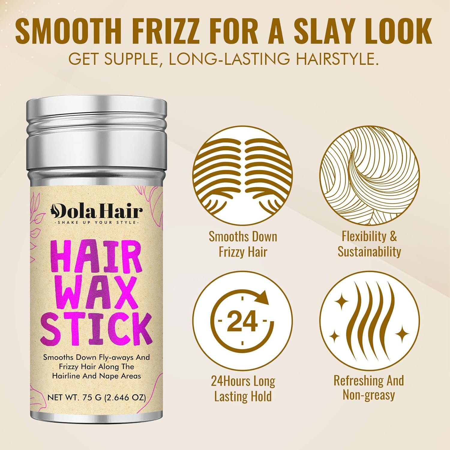 DolaHair Wax Stick provides strong, long-lasting hold while adding a silky, natural shine to your hair. The lightweight, non-greasy formula works perfectly on all hair types and textures.You can creat a sleek bun or hair updo hairstyle for any occasion like prom, ballet dance