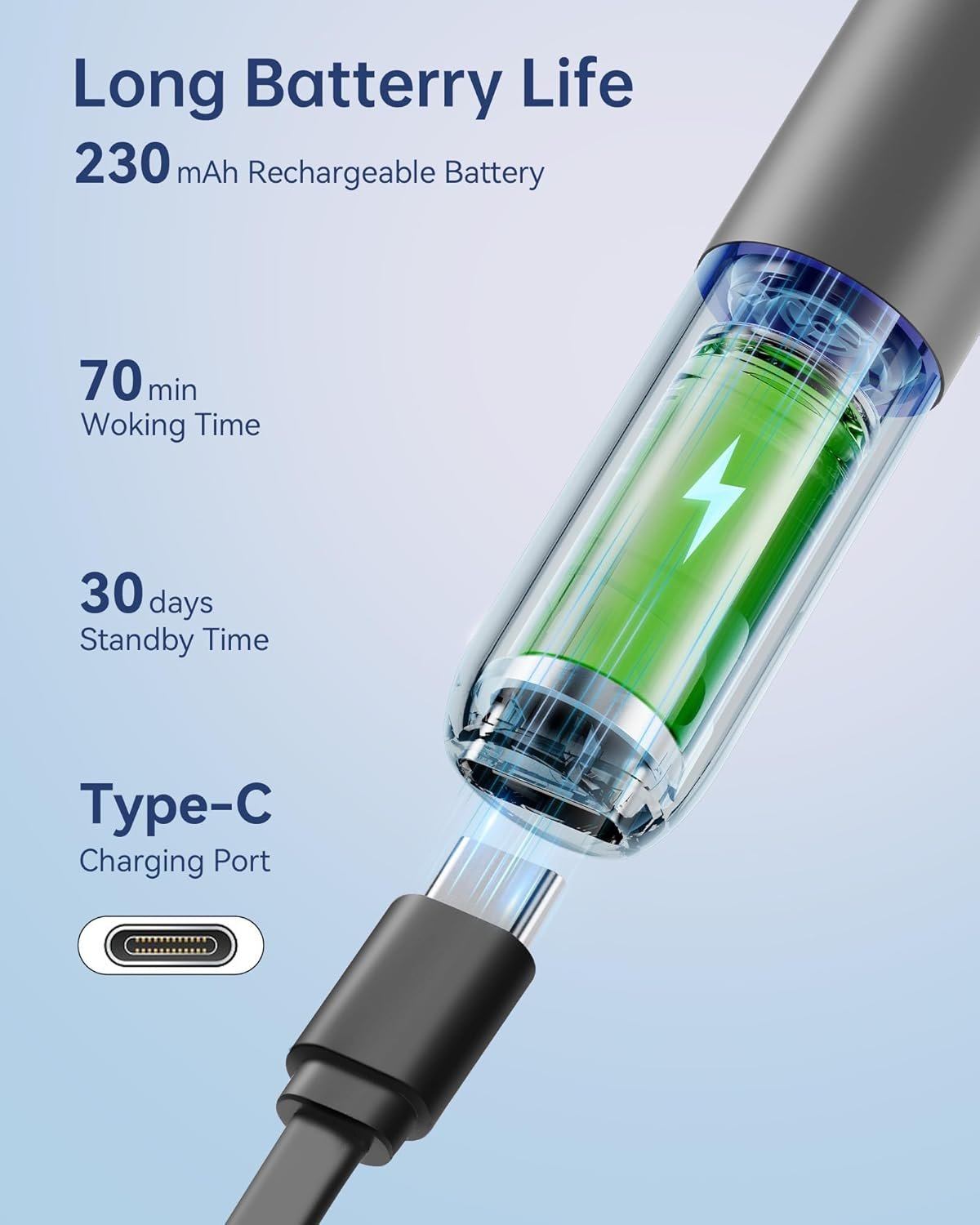 Portable & Long-Lasting – Lightweight for on-the-go use. Rechargeable battery provides 70 mins of use per full charge. (Note: Use original 9V charger per manual; avoid overcharging, direct sunlight, or fire.)