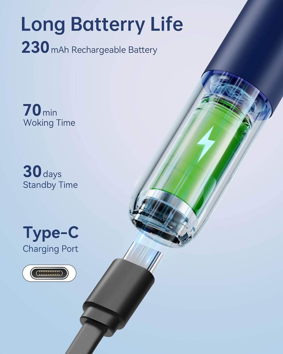 Portable & Long-Lasting – Lightweight for on-the-go use. Rechargeable battery provides 70 mins of use per full charge. (Note: Use original 9V charger per manual; avoid overcharging, direct sunlight, or fire.)