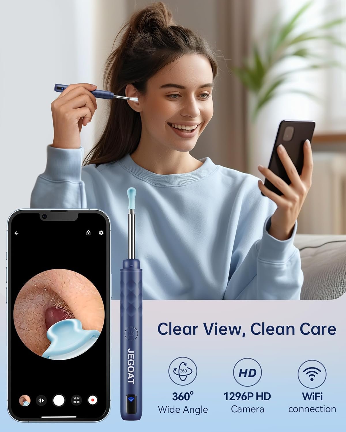 Safe & Easy to Clean – Q-shaped scoop + 12 replaceable silicone tips protect the ear canal. IP67 waterproof lens cleans in seconds (rinse/wipe; no full submersion)