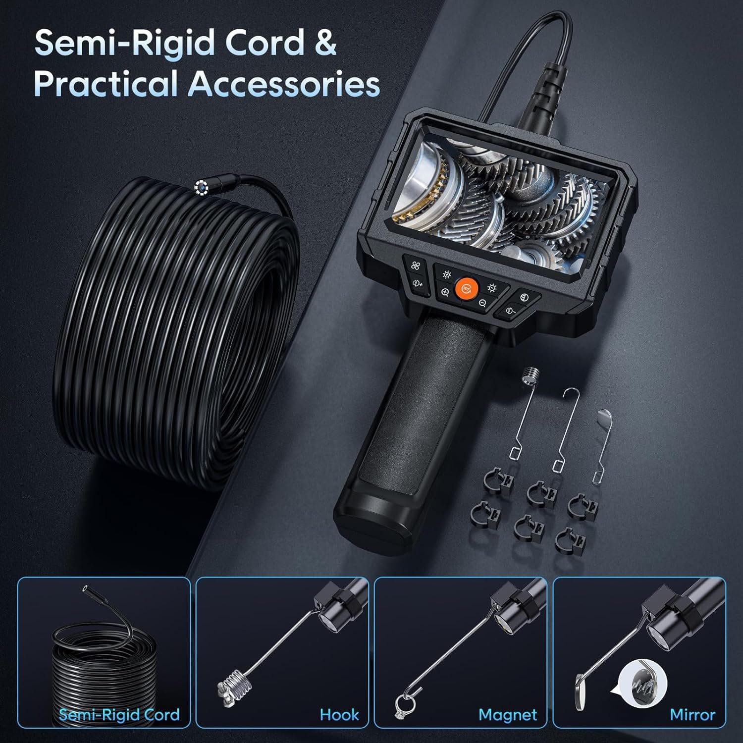 Upgrade Endoscope Probe: 7.8mm Unique probe technology. Combine with a 7.8mm integrated probe and HD camera. Additional built-in 50ft cord. Better to help us see problems in the narrow internal environment.
