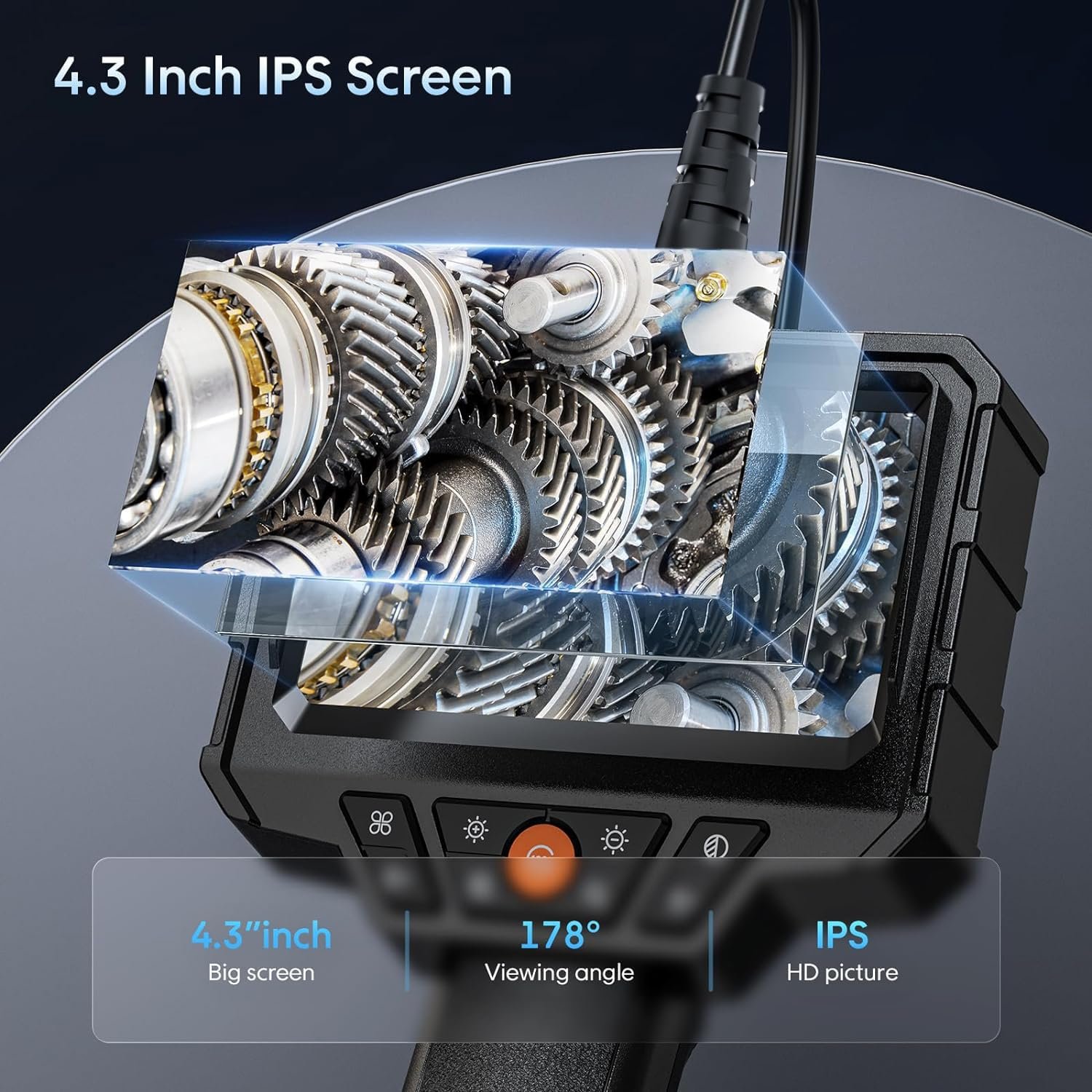 Advanced 4.3” IPS Screen: SKYEAR 50ft Semi-Rigid Cable Endoscope Camera with Light adopts 4.3”IPS Screen with 8mm Inspection Camera. Industy-Leading 2MP camera 1080P CMOS sensor to provide you with absolutely realistic visual effects, which 1920*1080P high-definition image. No need download APP