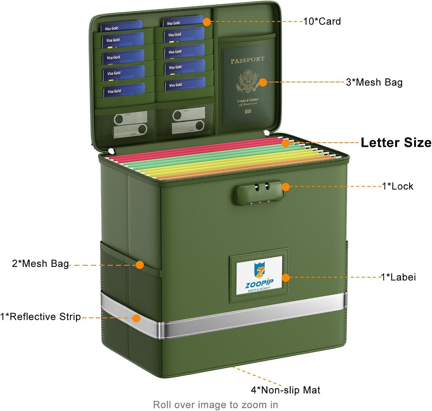 【Fireproof and Waterproof】ZOOPIP (12.2″*6″*10.2) fireproof document box with lock is made of not sticky Dust-proof Silicone coated fiberglass, which can withstand temperatures up to 2000°F. Fireproof file box with zipper closure has been passed by SGS TEST:UL94 VTM-0 Certified. At the same time, the glass fiber has excellent waterproof performance. In most cases, our storage pouch can withstand the impact of water.