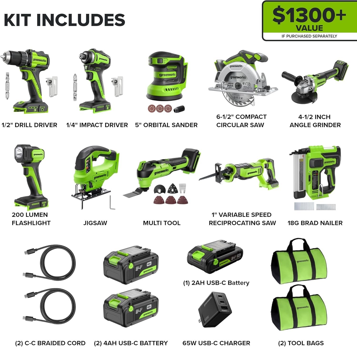 Introducing the Greenworks 24V lithium-ion platform, powering over 150 versatile indoor and outdoor products such as Lawn mowers, Blowers, String trimmers, Chainsaws, and an array of power tools(Drill,Impact Driver,Hammer Drill,Impact Wrench,Rotary Hammer,Angle Grinder,Jig Saw,Circular Saw,Reciprocating Saw,Work Light,Standing light,Bluetooth Speaker,Inflator,Heat Gun,Fan,Drain Auger,Multi-Tool,Buffer,Speed Saw,Heat Glue Gun,Caulk Gun,Crown Stapler,Brad Nailer,Camping Light,Flashlight,Quarter sheet sander,Finishing Sander ,Orbit sander,Belt sander…..). Experience 20% more power and 35% longer run-time with our 24V lithium-ion battery, which delivers consistent, fade-free performance and no memory loss after charging. Choose from 1.5Ah, 2Ah, 4Ah and 5Ah batteries to suit your needs in various scenarios. Enjoy peace of mind with a 3-year tool and battery warranty, safeguarding your investment. Embrace the power and flexibility of the Greenworks 24V platform for all your projects.
