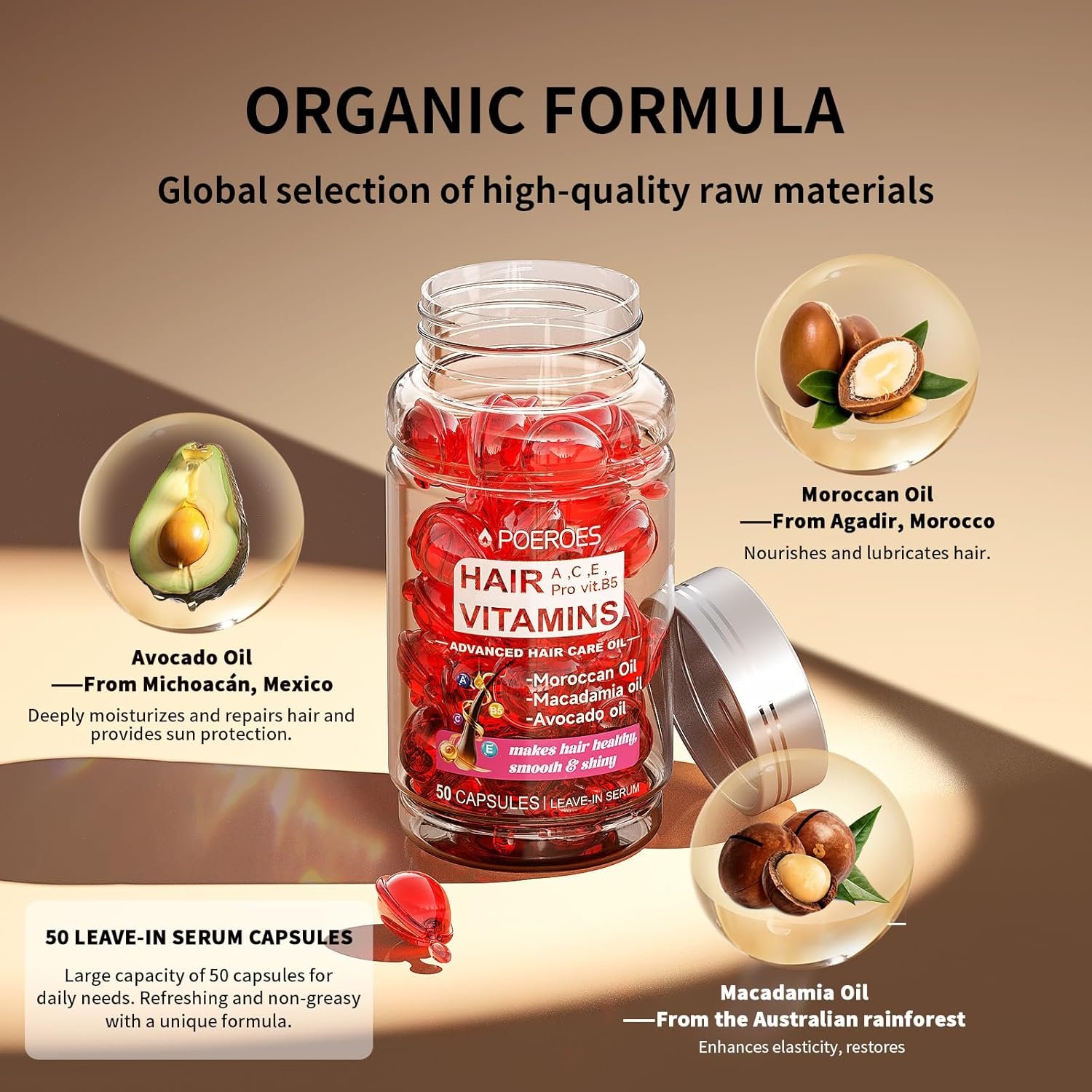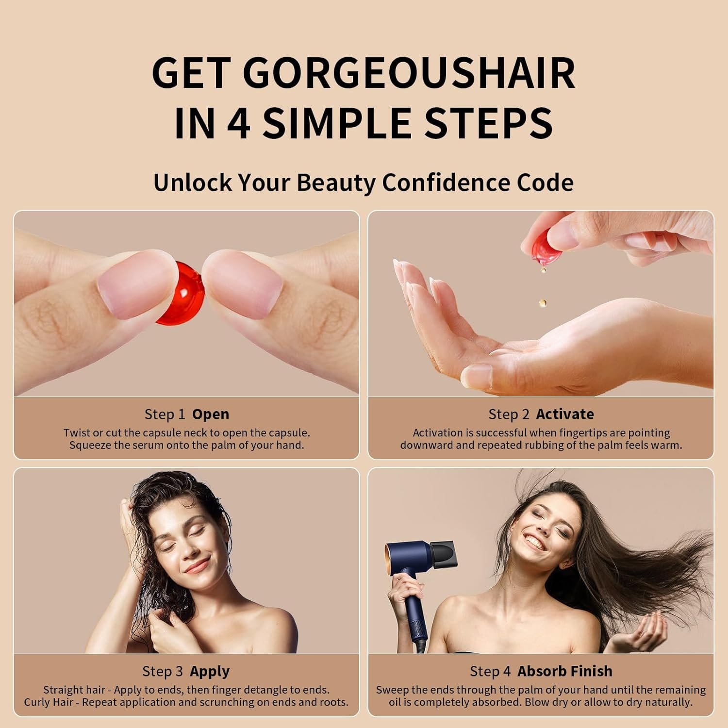 Convenient Hair Nourishing Capsules: The capsule formula is easy to use, simply place a few drops of the concentrated oil in the palm of your hand and it’s easy to apply and carry around. 50 capsules will nourish your hair for a longer period of time.