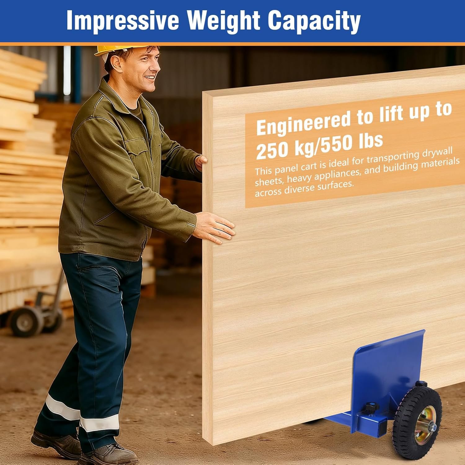 Lift More with Ease: With a limit of 250 kg/550 lbs, this panel cart meets the needs of professionals moving drywall, machinery, or supplies on any surface. Depend on its resilience for challenging worksite conditions.