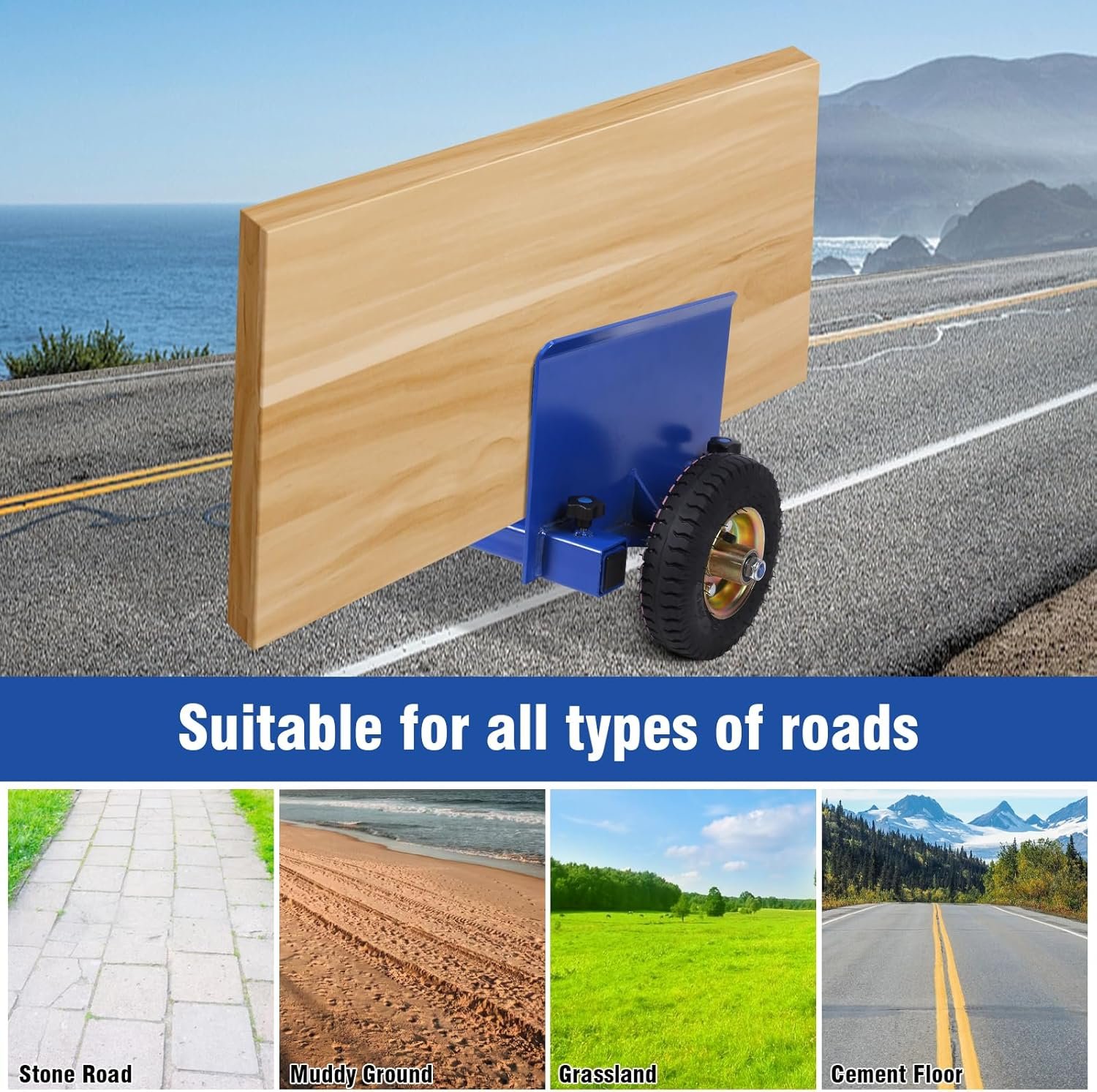 Reinforced Load-Bearing Design: Outfitted with pneumatic tires and specialized compression- bearings, this drywall mover offers superior load capacity and smooth, slip- movement over varied terrain, ensuring effortless transport.
