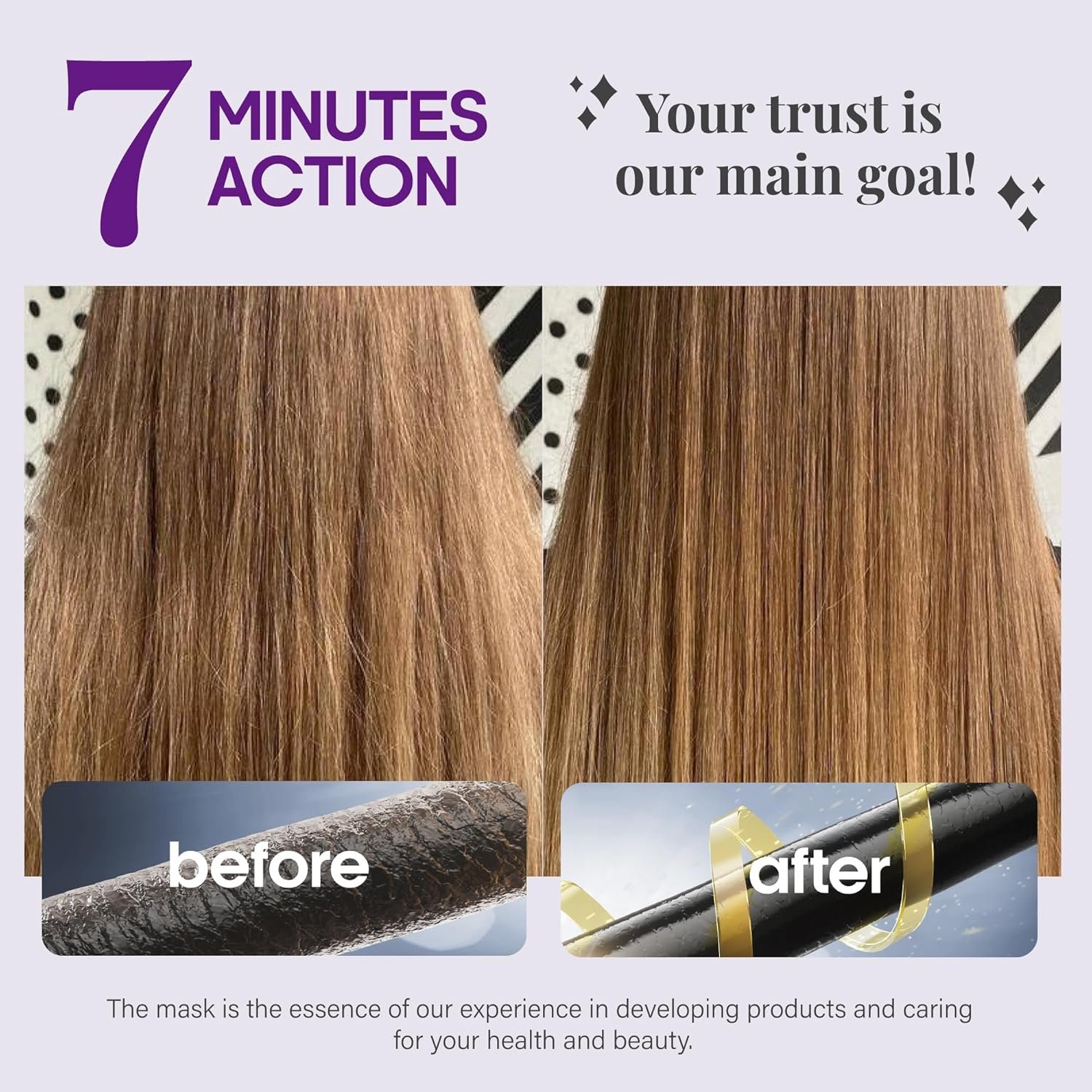 Repair & Strength — strengthens and nourishes hair with Keratin, Biotin, Collagen, Wheat Protein, Argan & Coconut Oils, helping strands feel healthier, resilient, and vibrant.