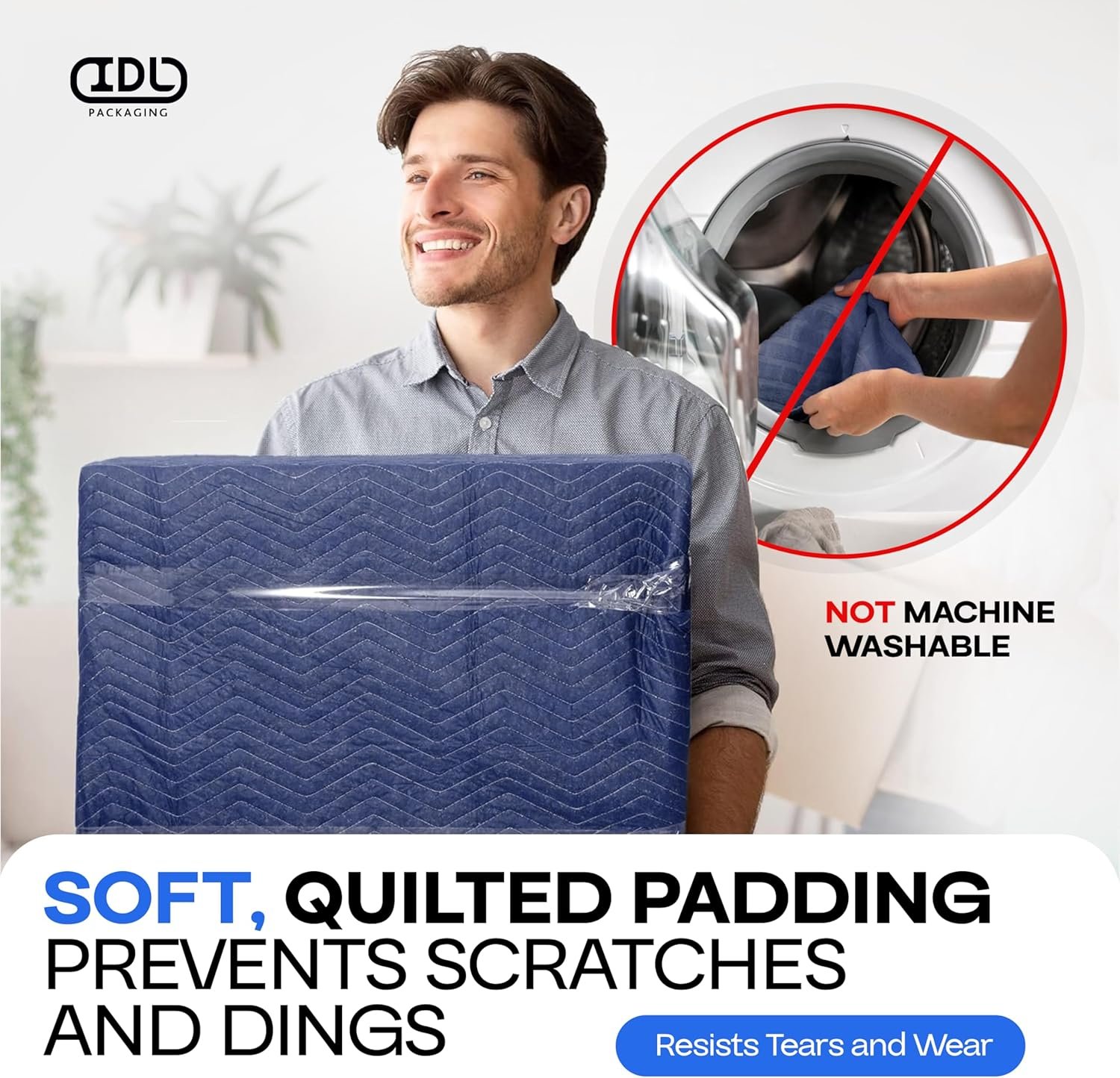 SOFT QUILTED PADDING FOR PROTECTION: Thick, soft padding inside the shipping blanket prevents scratches and dents during moves. Ideal for wrapping delicate items like wood furniture, electronics, or décor pieces while keeping them in perfect condition.