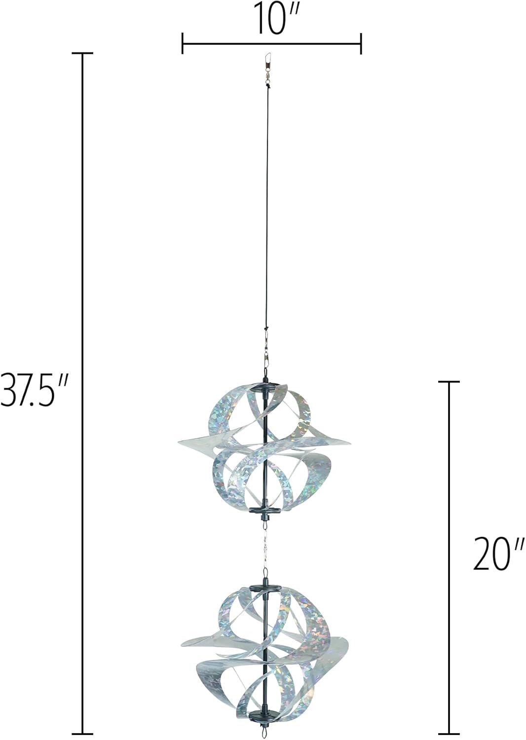 Measuring 10 inches wide by 20 inches high, the double vortex spinner includes a 17.5-inch string that it hangs from for a total hanging height of 37.5 inches. The sections are connected by snap swivel clips