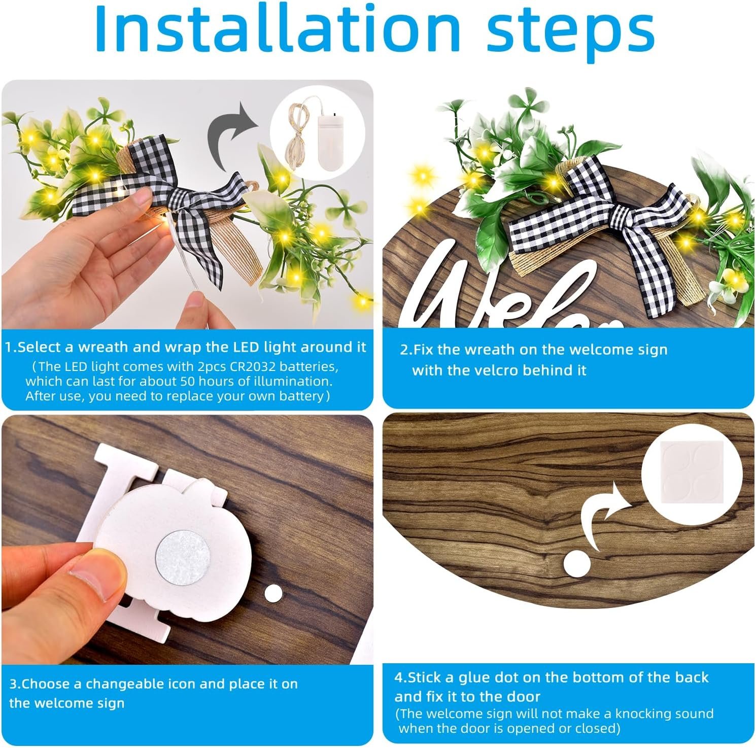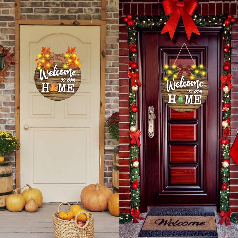 ✔ The holiday decoration welcome sign also includes a battery-powered LED fairy light to add a warm and cozy glow to your home.