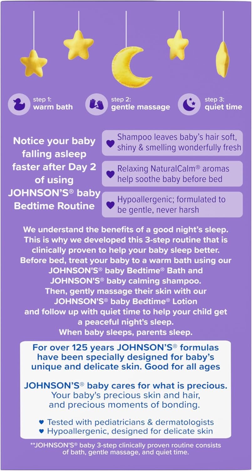 CLINICALLY PROVEN ROUTINE: Johnson’s 3-step bedtime routine of bath, gentle massage, and quiet time is clinically proven to help babies sleep better. Pediatrician- & dermatologist-tested formulas are hypoallergenic & free of parabens, sulfates & dyes