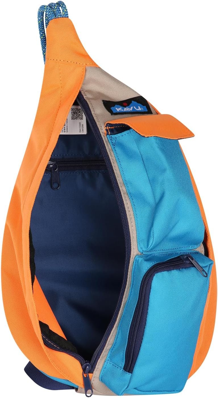 Customers find this sling pack to be well-made and durable, appreciating its beautiful print and bright pink color. The bag is spacious, accommodating paperback books and rain jackets, and features two main compartments and two additional zip pouches. They like its versatility for various activities, from hiking and biking to everyday use, and one customer mentions it kept its shape well when loaded. While opinions about the size are mixed, with some finding it spacious and others noting it’s smaller than the original Kavu rope bag.