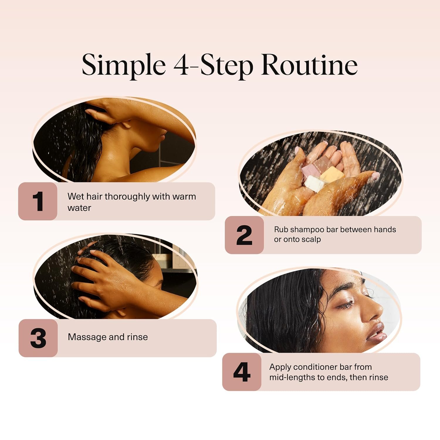 COMPLETE SHAMPOO AND CONDITIONER SET – Upgrade your hair wash routine with this 4-piece sampler featuring our best-selling shampoo bar and conditioner bar. A convenient way to discover your favorites while reducing single-use plastic.