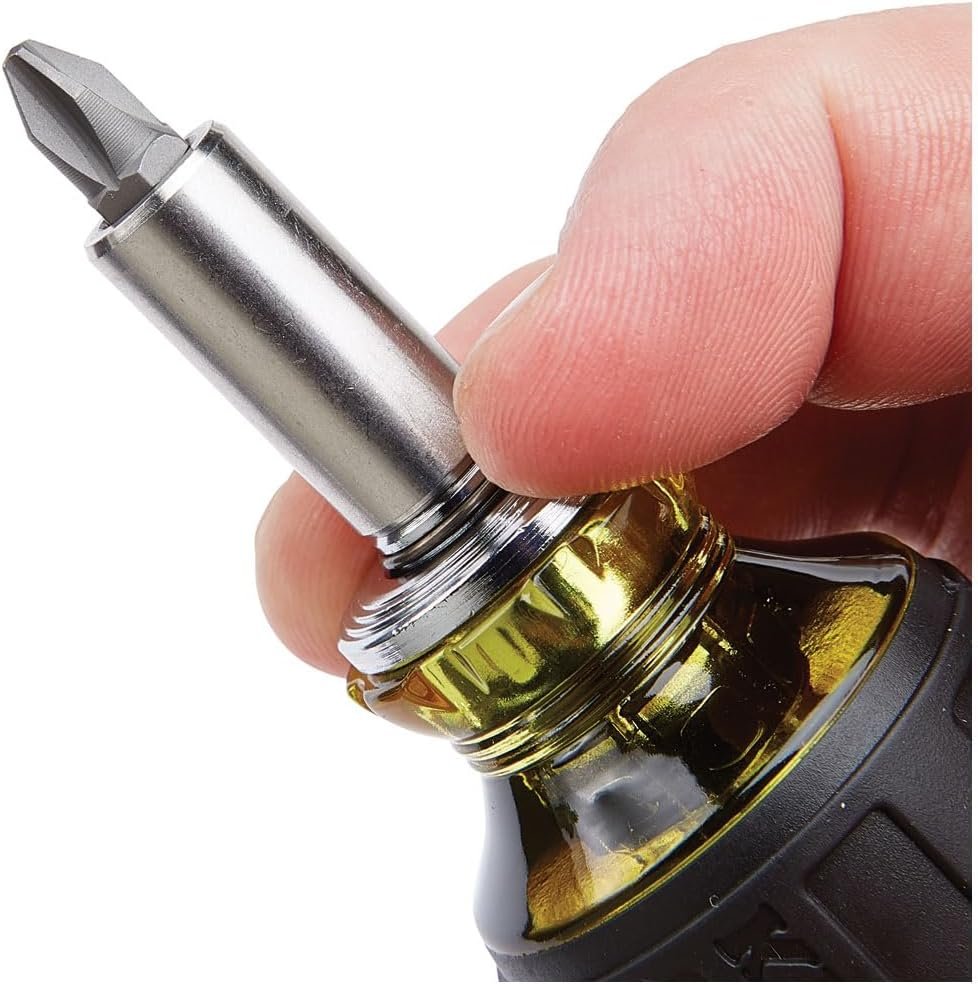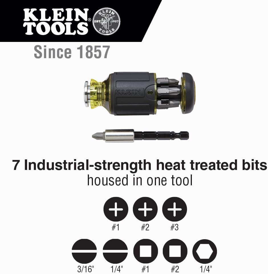 Klein Tools 32308 Multi-bit Stubby Screwdriver, Impact Rated 8-in-1 Adjustable Magnetic Tool with Phillips, Slotted, Square and Nut Driver