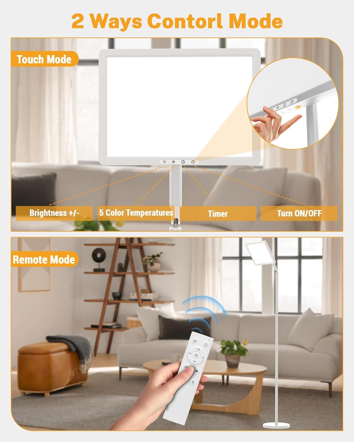 Dual Control and Hourly Timer: Dual control with remote control and touch, easy to operate and within reach. Easily adjust the settings of the daylight therapy lamp from your comfort zone. The timer function allows you to customize the shut-off time, This sun lamp is your perfect indoor lighting companion