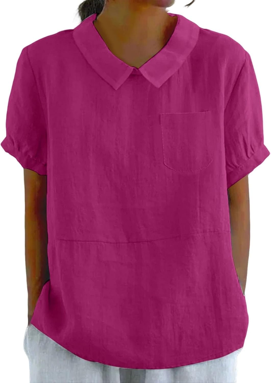 Linen Shirts for Women 2025 Summer Lightweight Short Sleeve Tunic Tshirts Casual Cute Collared Tops Business Blouses