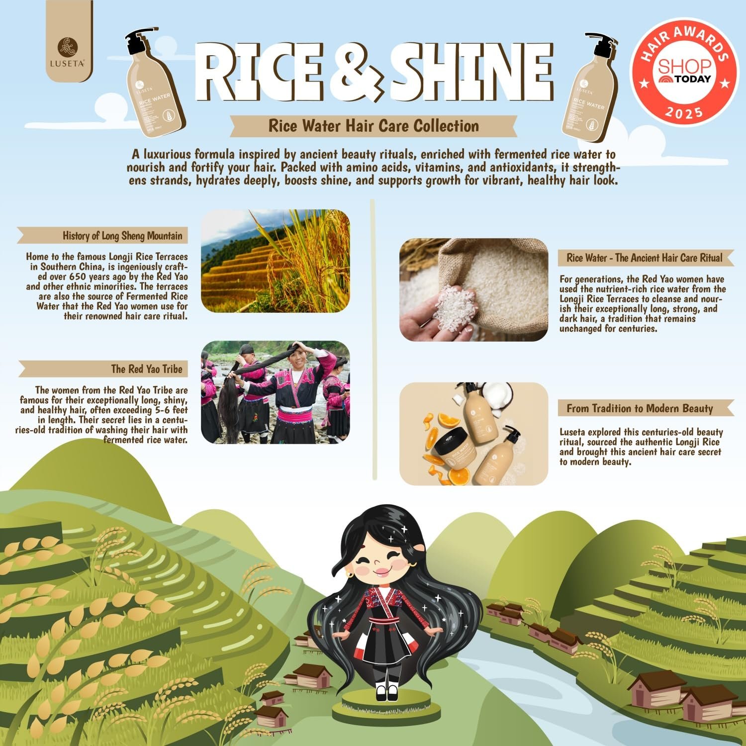 Ancient Rituals, Radiant Hair: Inspired by traditional Asian haircare rituals, our Rice Water Shampoo and conditioner set harnesses the power of fermented rice water to strengthen, hydrate, and revitalize hair. Experience silky, resilient strands with a natural shine and effortless softness.