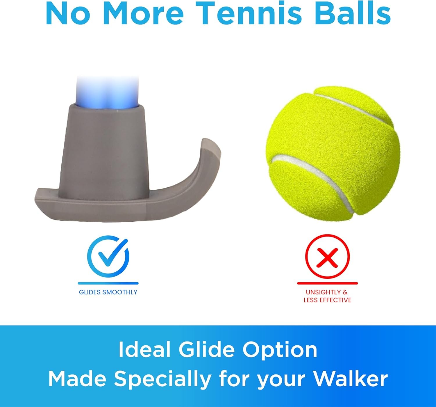Smooth mobility on all surfaces: Glides effortlessly across carpet, hardwood, tile, sidewalks, and pavement; reduces friction and eliminates drag for safer, quieter walker movement indoors and outdoors