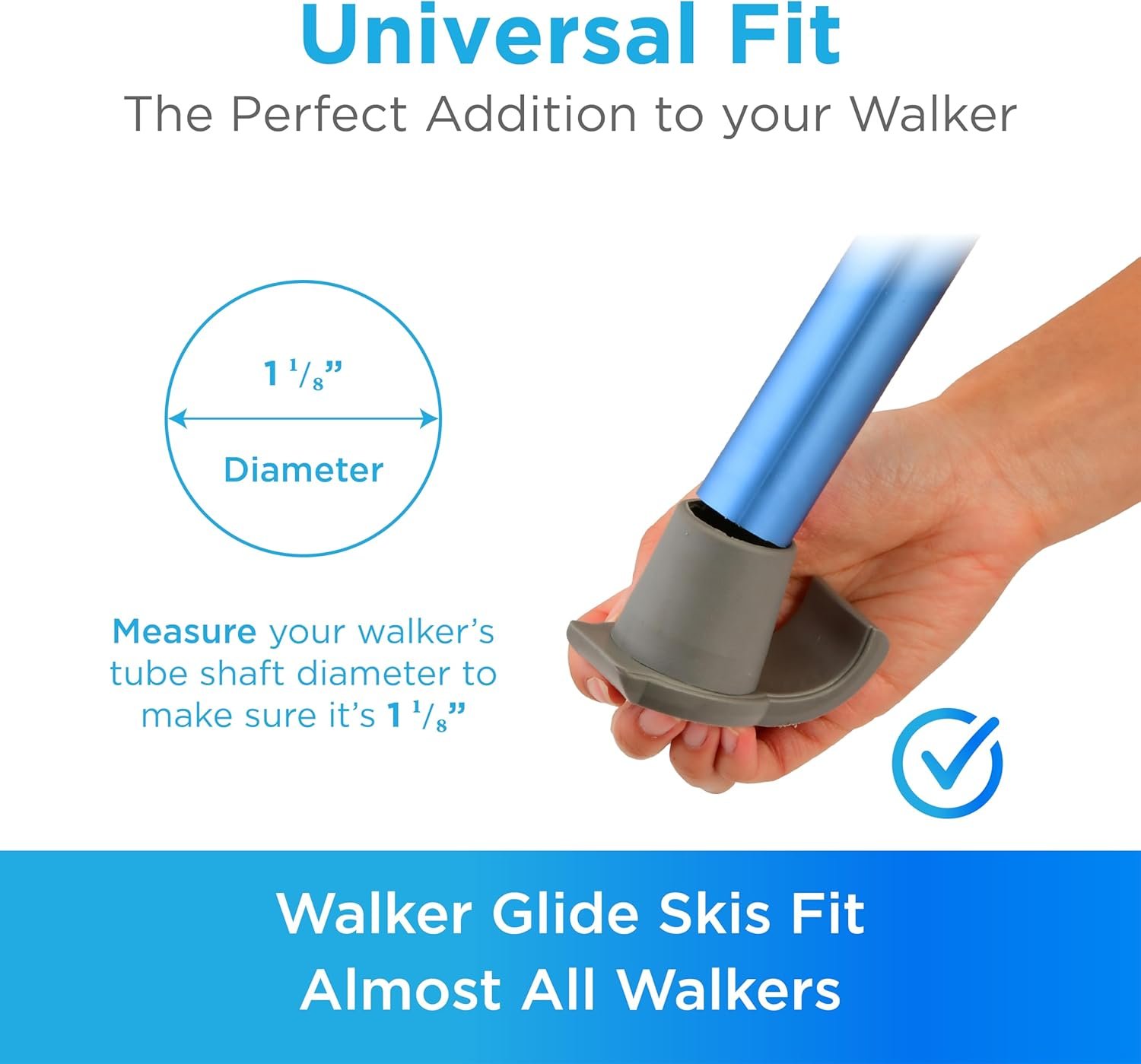 Improve walker performance with Nova Joy Walker Glide Skis – an essential mobility accessory for seniors, adults, and anyone using a standard walker. Designed to fit most walkers with 1 inch diameter legs, these high-quality glide skis reduce friction and minimize snagging across a wide range of surfaces including carpet, hardwood, tile, and sidewalks. Crafted with high-quality materials including durable plastic and protective cloth covers, Nova Joy walker skis are built for smooth, quiet movement and long-lasting daily use. Each style features a curved front edge that glides with ease over indoor and outdoor surfaces. Available in convenient 4-packs with two complete pairs, these walker skis are ideal for upgrading all four walker legs or replacing worn tips with a reliable and stylish solution. Designed to complement most walker frames, Nova Joy’s glides combine thoughtful function with everyday comfort. Whether you’re recovering from surgery, navigating daily routines, or simply seeking more comfort and ease of movement, Nova Joy’s walker glides deliver smoother strides and a more comfortable experience. Easy to install, quiet in motion, and made for life on the go – walk with Nova Joy and glide confidently into every day. For over 30 years, Nova Joy has been a trusted name in mobility – a family-owned company dedicated to empowering independence, dignity, and joy. Their thoughtful, user-centered designs have supported more than three generations of families with quality products that truly make life easier. Every product is a reflection of Nova Joy’s unwavering commitment to compassion, care, and human connection.