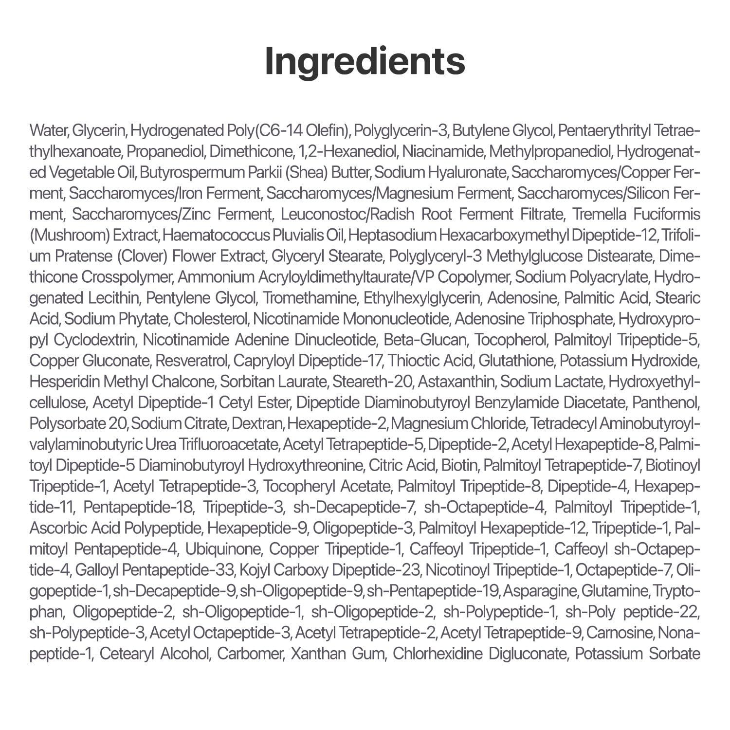 [KEY INGREDIENTS] Formulated with NAD+, an anti-aging ingredient that enhances cell turnover, stimulates collagen production, and promotes skin repair along with 50 types of peptides to plump and firm the skin.